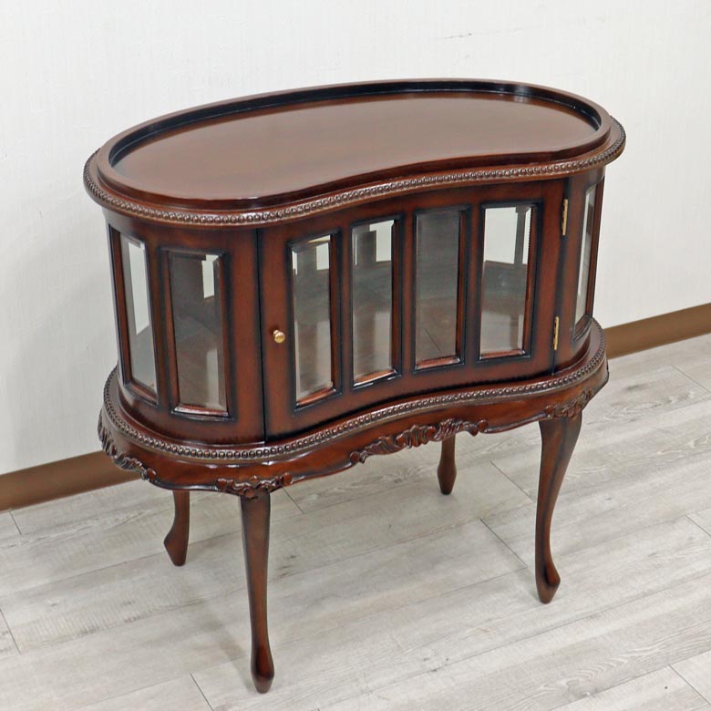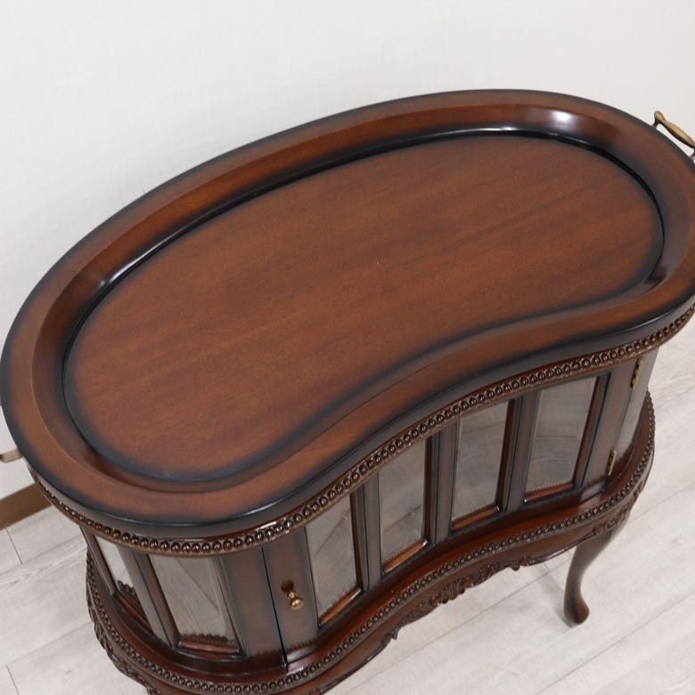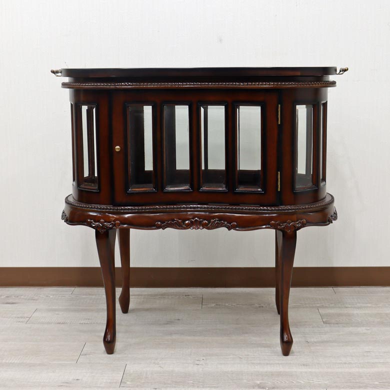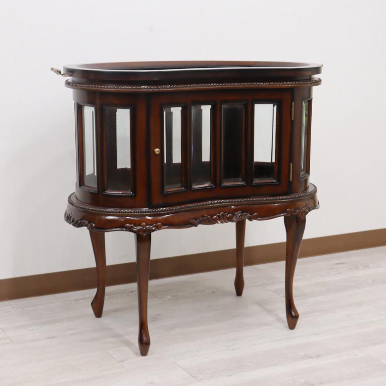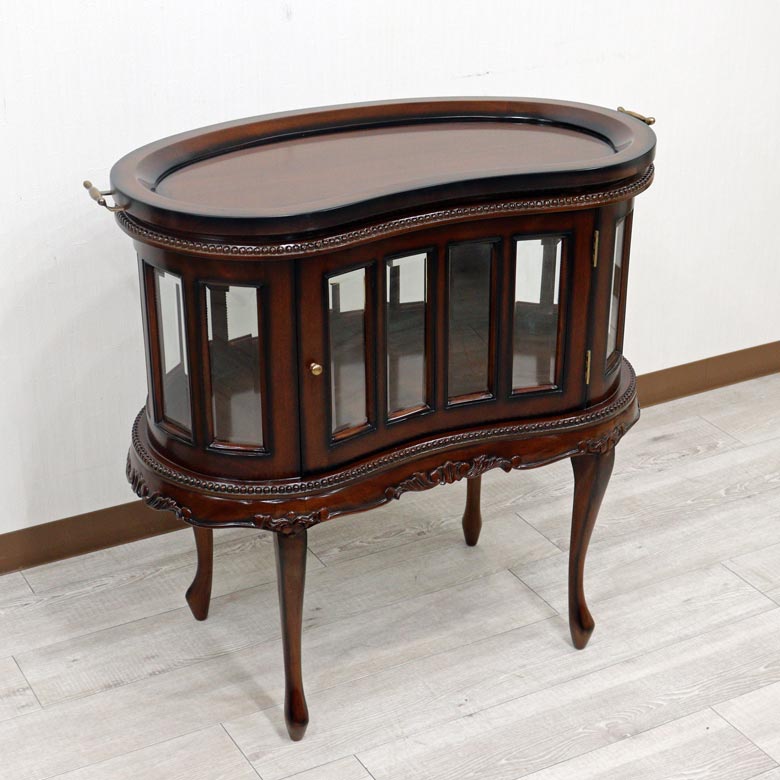 トレー付きショーケース キャビネット 猫脚 マホガニー 木製