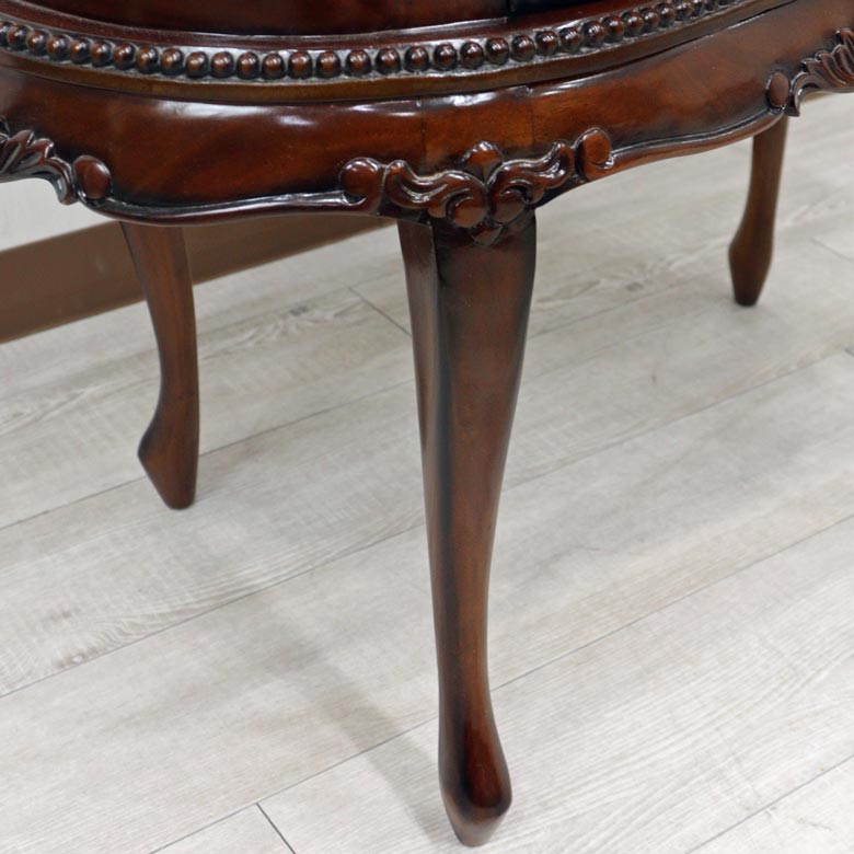 高級家具などにつかわれるマホガニーを使用し、深みのある色合いと細部に施された彫刻(カービング)が優雅な雰囲気を演出します。