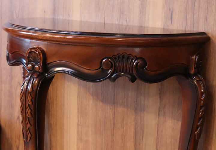 高級家具などにつかわれるマホガニーを使用し、深みのある色合いと細部に施された彫刻(カービング)が優雅な雰囲気を演出します。