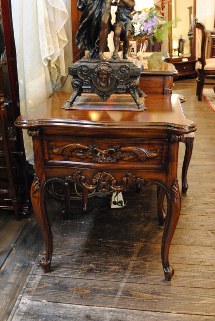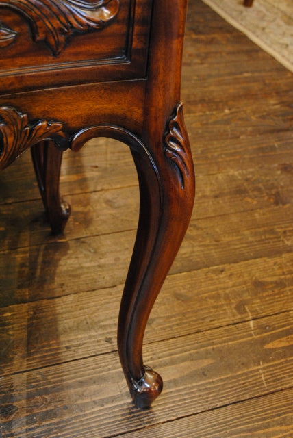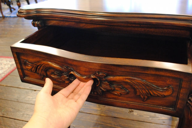 高級家具などにつかわれるマホガニーを使用し、深みのある色合いと細部に施された彫刻(カービング)が優雅な雰囲気を演出します。
