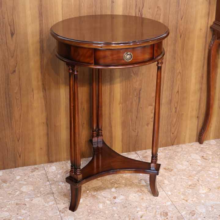 コンソールテーブル 収納付き 円形 マホガニー サイドテーブル 木製