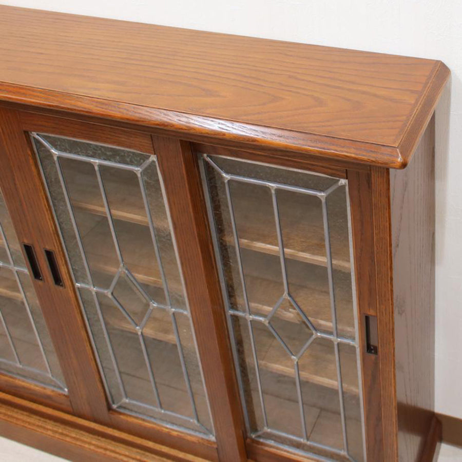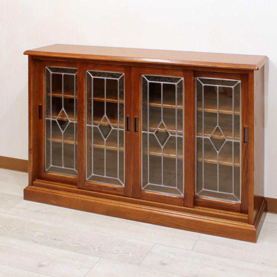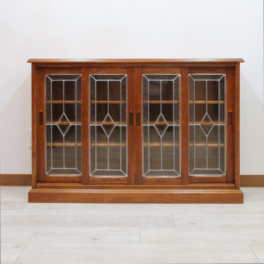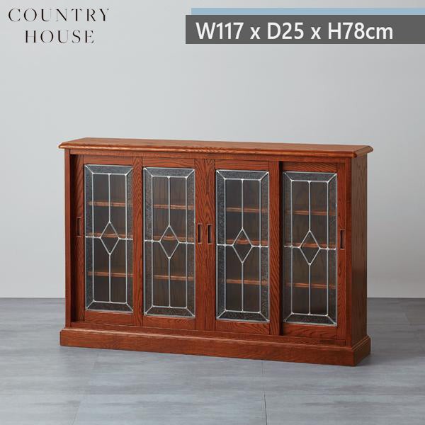 カントリーハウス 4ドア スリムキャビネット サイドボード 引き違い戸 オーク材 天然木使用 国産家具 英国調 ブリティッシュ CDB33