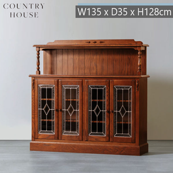 カントリーハウス 4ドア サイドボード 宮付 スリムキャビネット オーク材 天然木使用 国産家具 英国調 ブリティッシュ CLB13