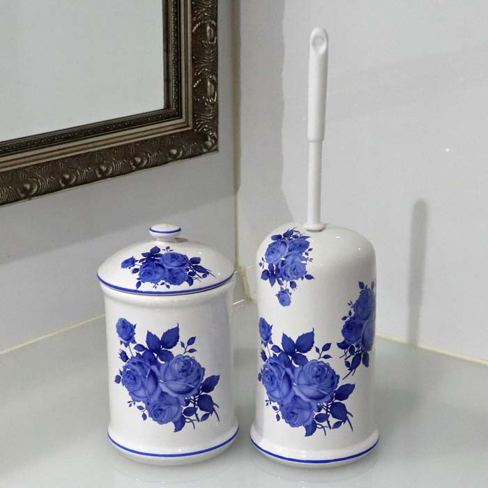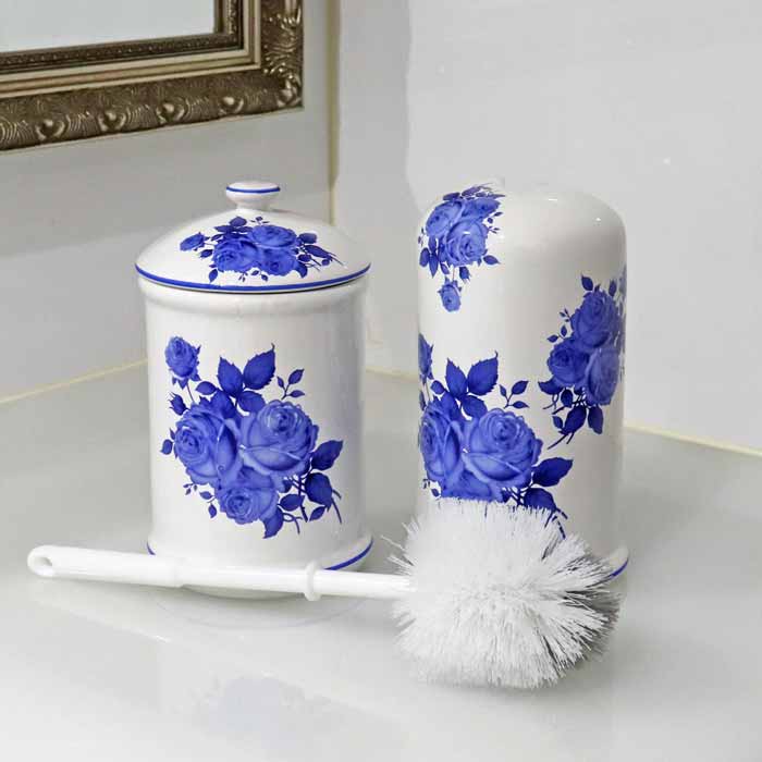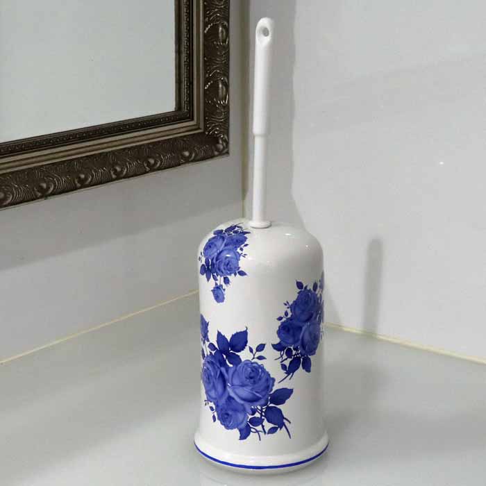 トイレブラシ 陶器 サニタリーポット トイレブラシセット ブルーローズ