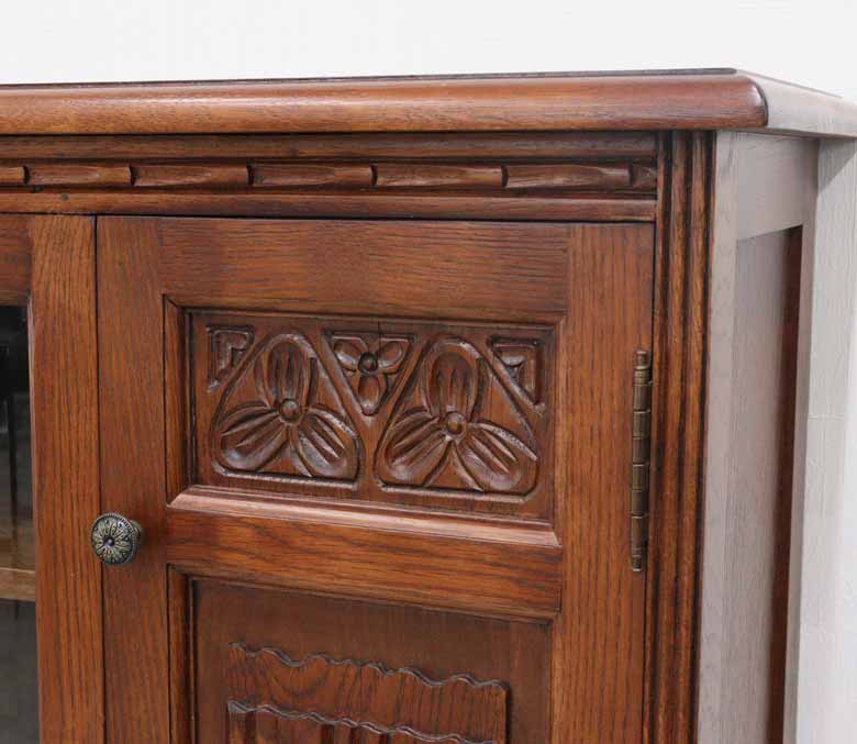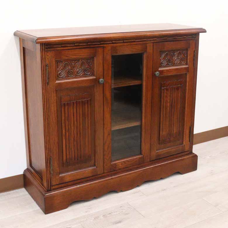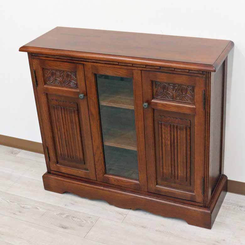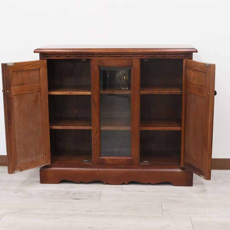 ローキャビネット 幅88cm サイドボード オーク 完成品 木製 レトロ