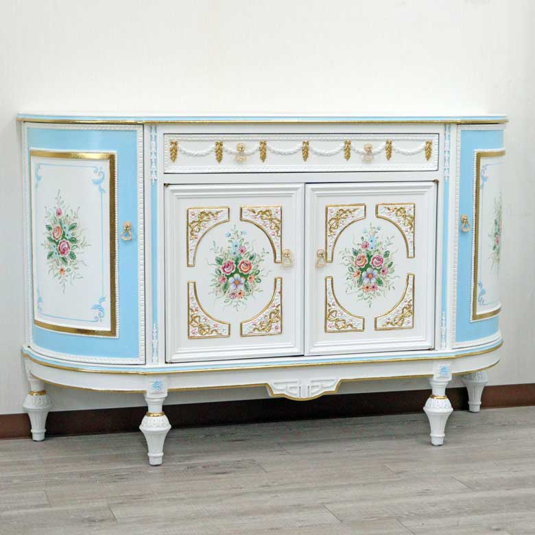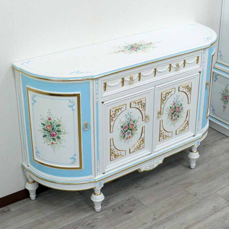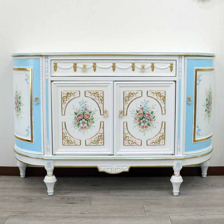 ロココ サイドボード 146cm 半円 ローキャビネット 白家具