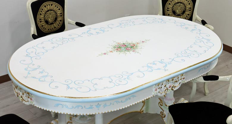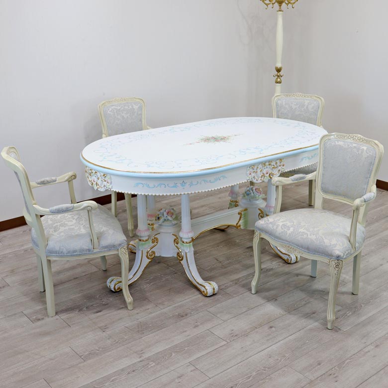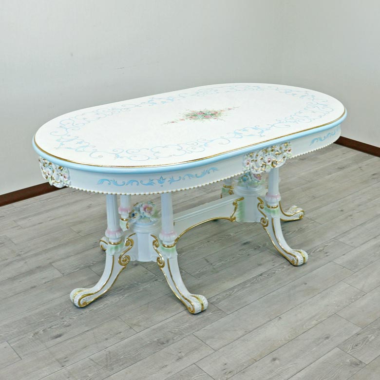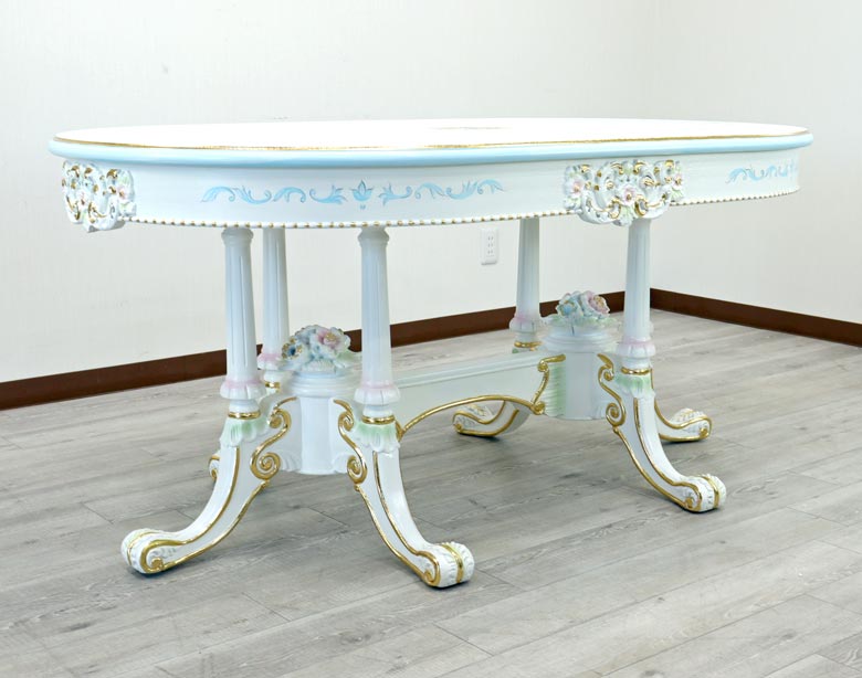 ロココ ダイニングテーブル 160cm 楕円形 4人用 クラック塗装 白家具