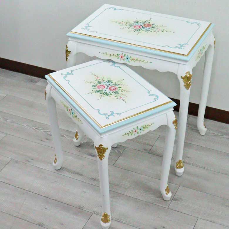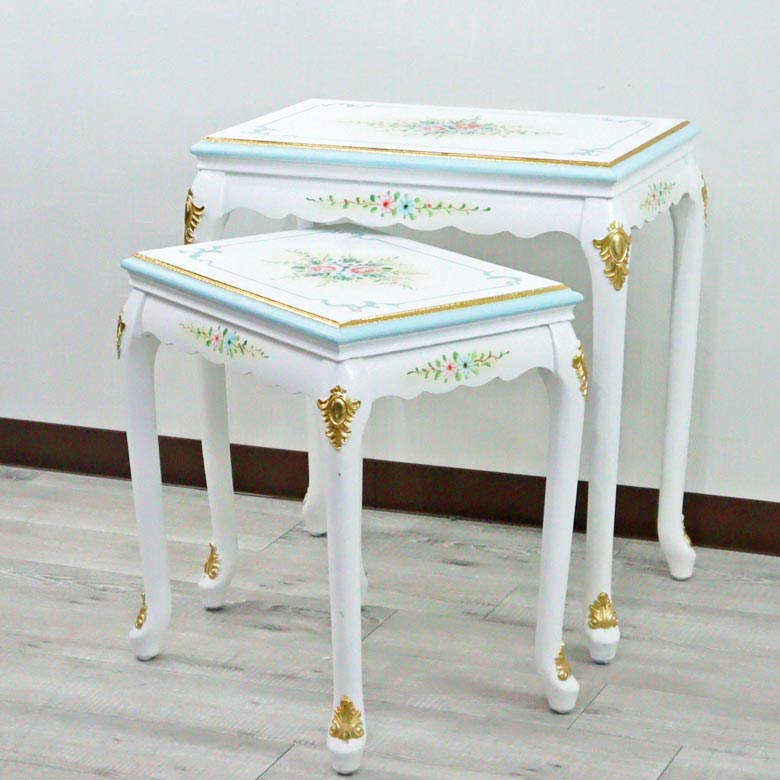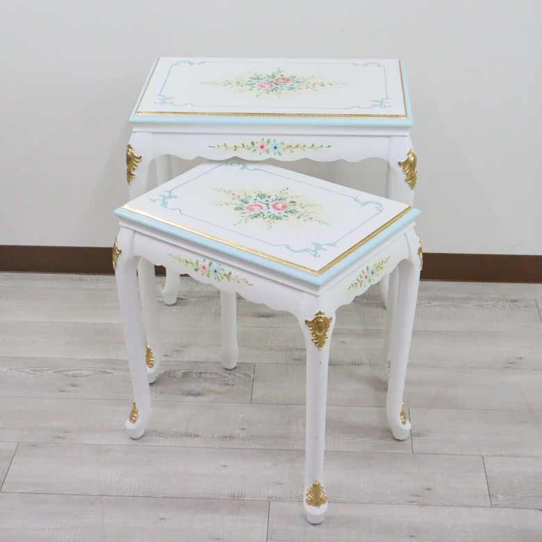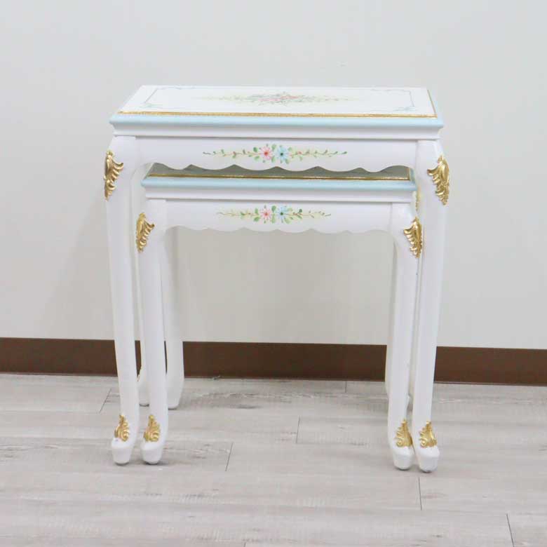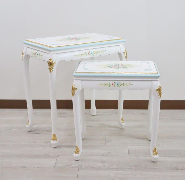 ロココ ネストテーブル 2台セット サイドテーブル 猫脚 白家具