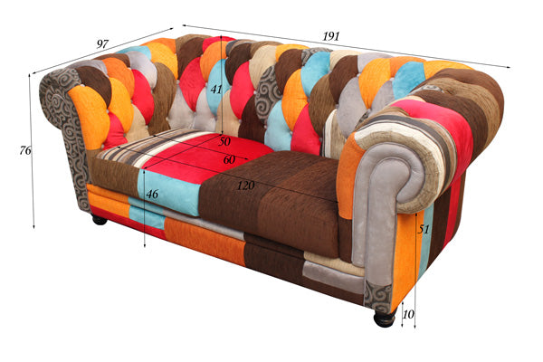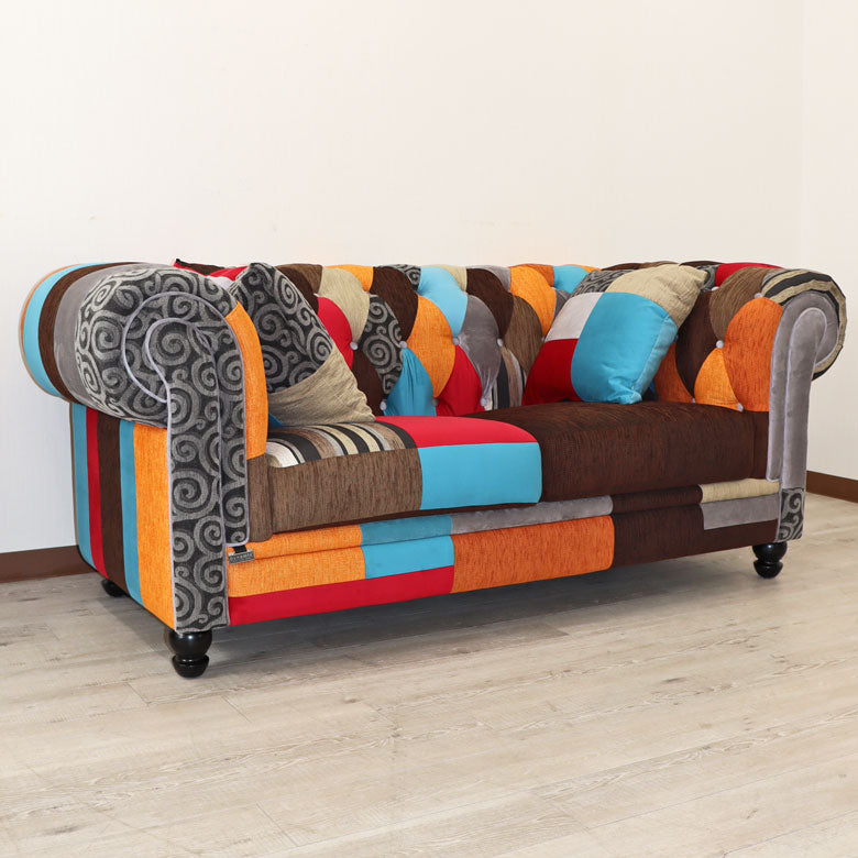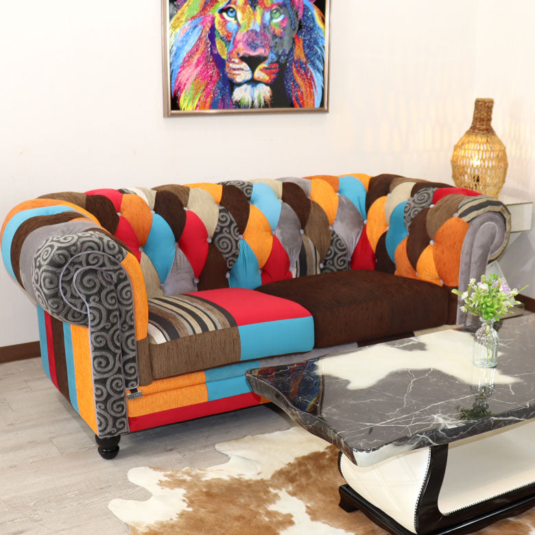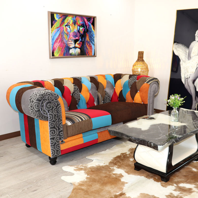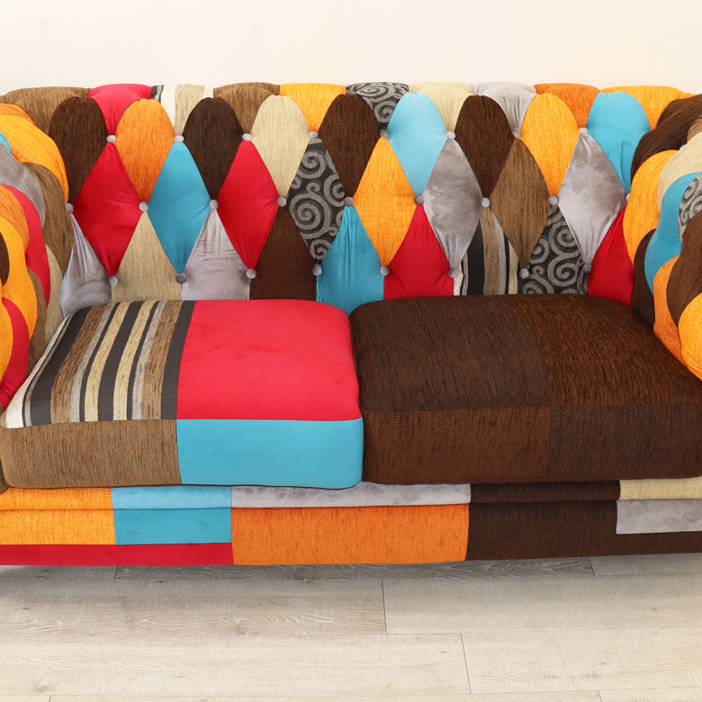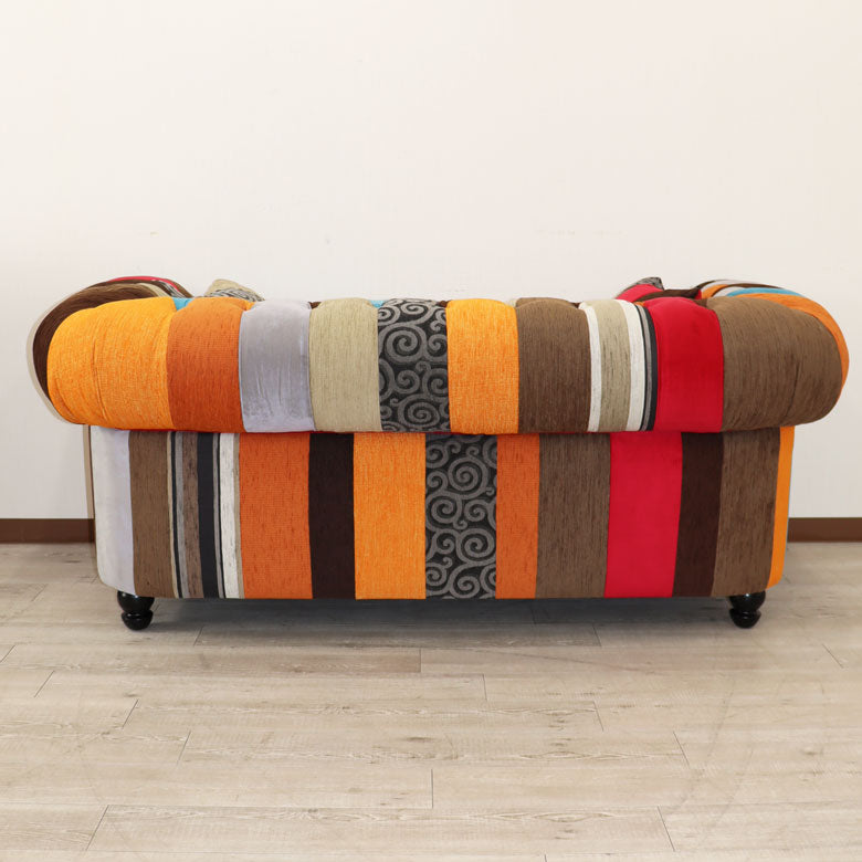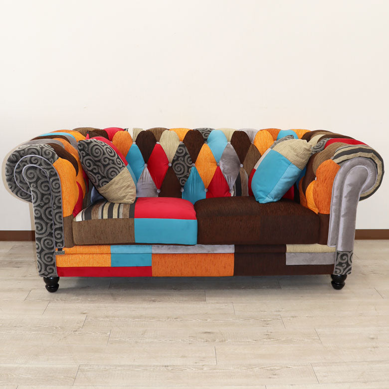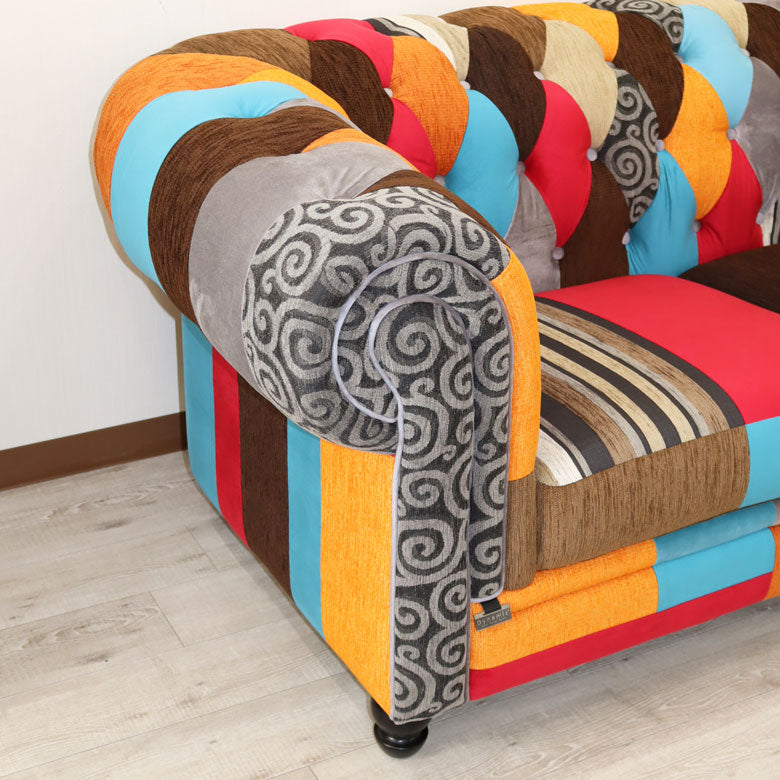 パッチワーク ソファ 2.5Pソファ カラフル 二人がけ 映え ソファー チェスターフィールド調
