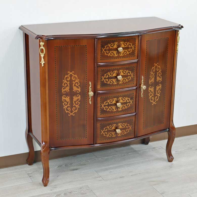 イタリア ローキャビネット サイドボード 猫脚 象嵌 DOGI 4316