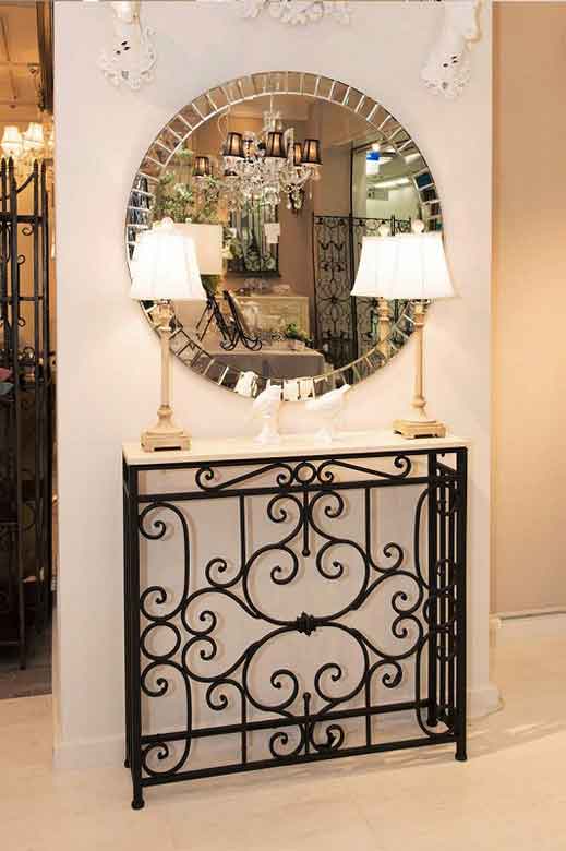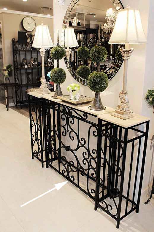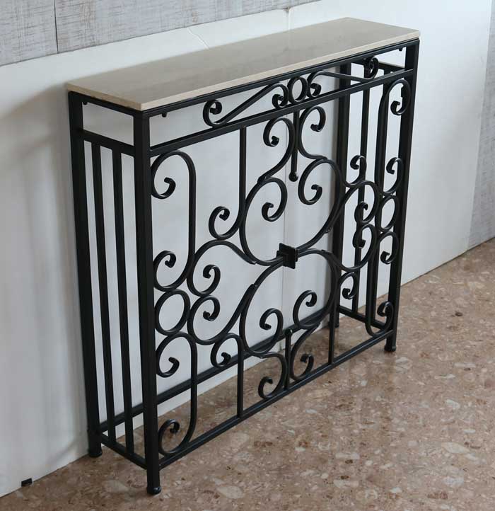 コンソールテーブル 88cm幅 ロートアイアン 大理石テーブル 花台 FM-285
