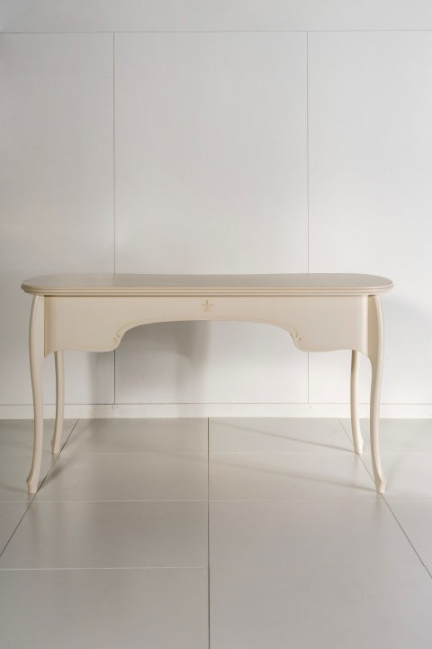 流れるような美しい曲線の脚を持つプレジデントデスク。広々とした天板と背面の装飾も美しく、対面式としてお使いいただけます。