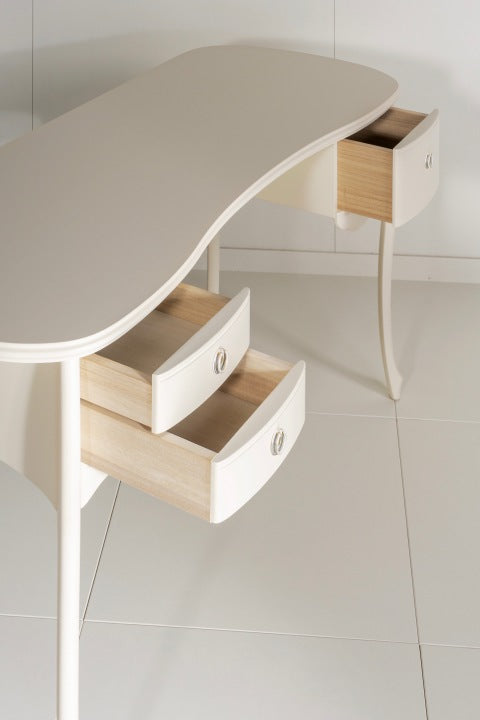 オフィスでもプライベートでも、このデスクがあるだけで空間をエレガントで華やかに演出してくれる、そんな大人の女性をイメージしたプレジデントデスクです。