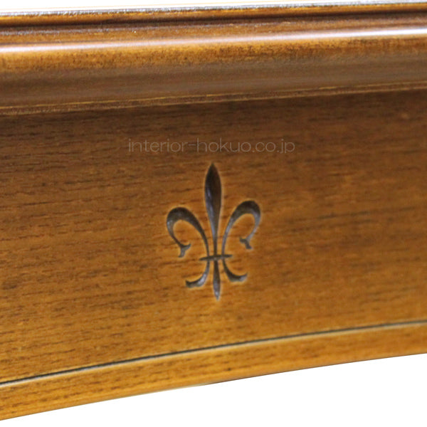 背板には百合の紋章などがデザインされた彫刻が施されており、対面式でお使い頂いても美しいデザインです。
