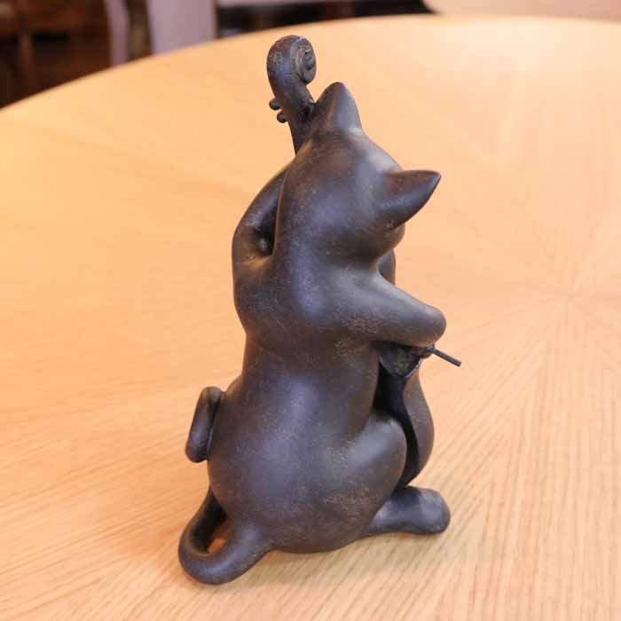 樹脂製 猫のオーケストラ チェロ アンティーク調 ブラック 猫雑貨