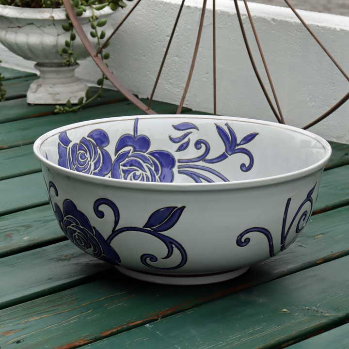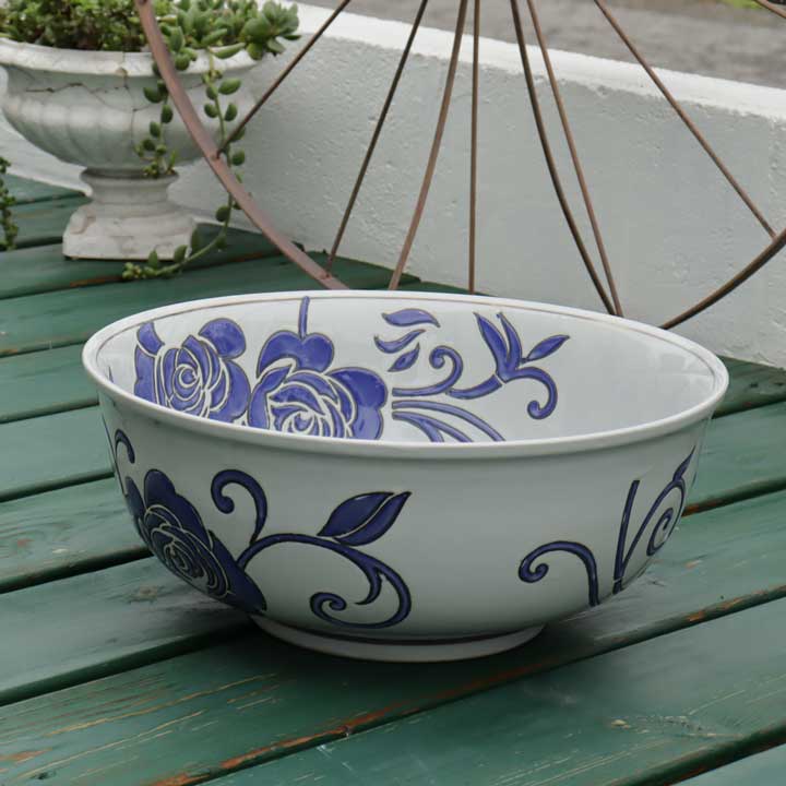 ◆和モダン風の空間づくりに最適な染付の陶器水鉢です。