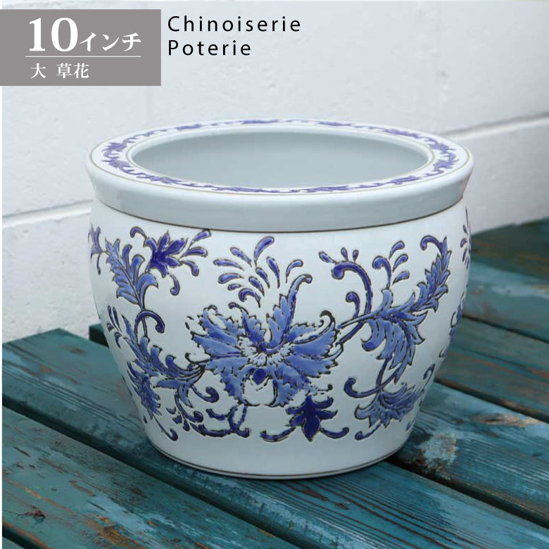 水鉢 大型 草花 大 10号 火鉢 鉢カバー プランターカバー 青草