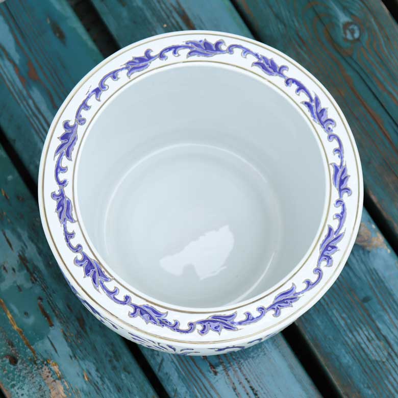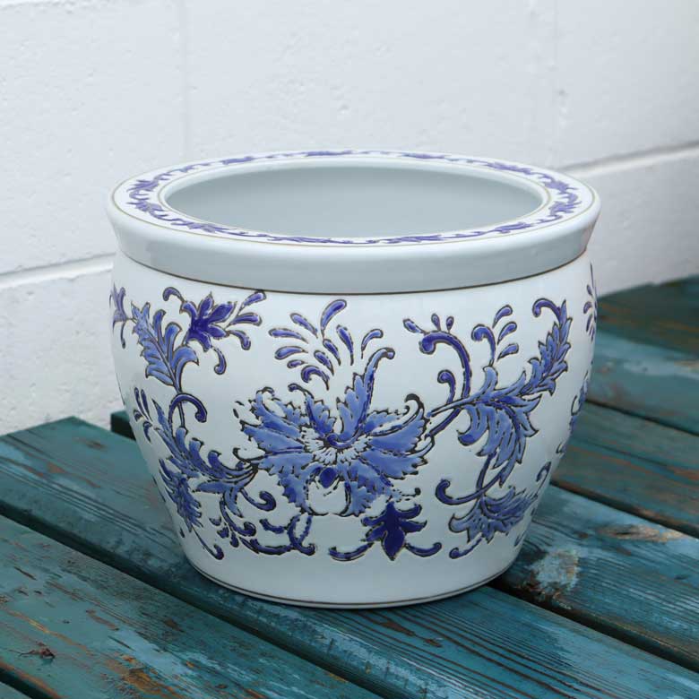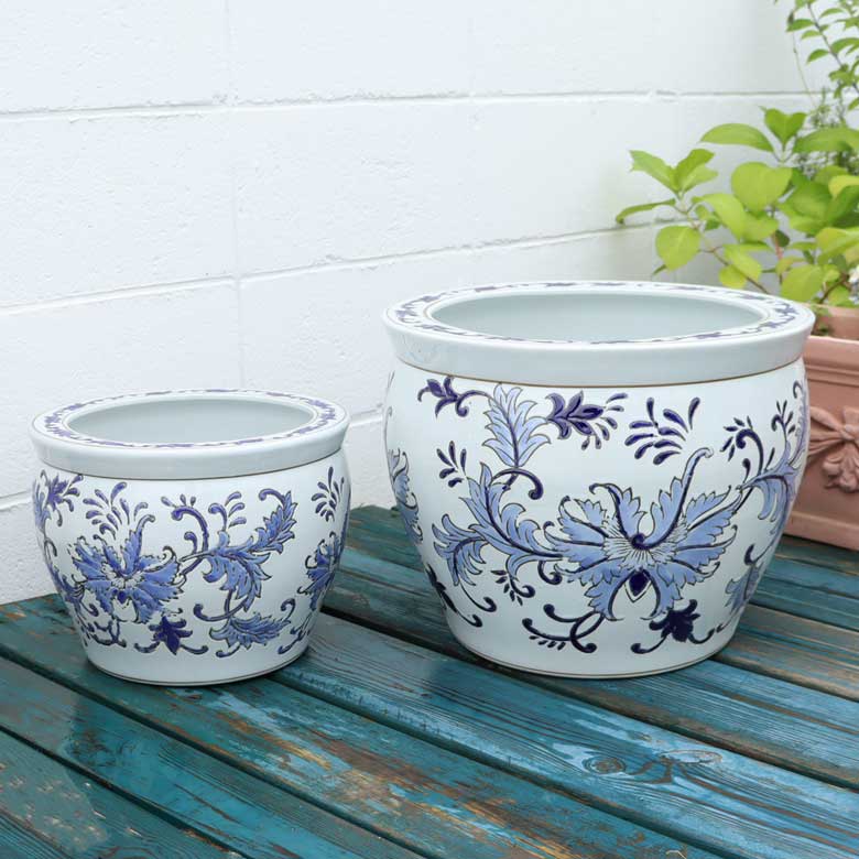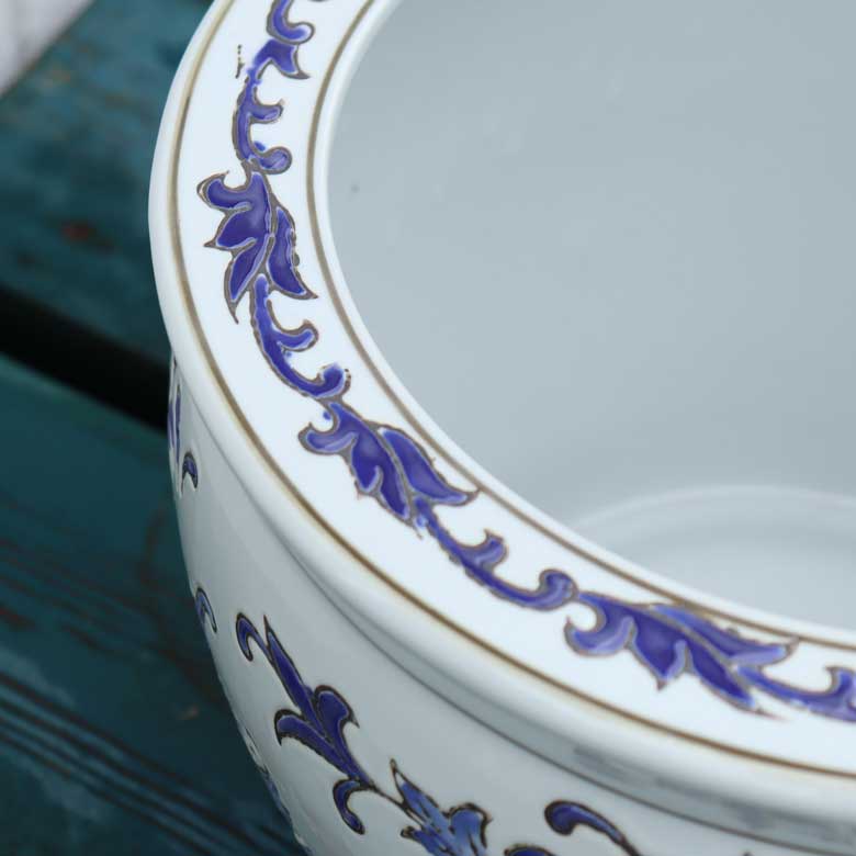 ◆和モダン風の空間づくりに最適な染付の陶器水鉢です。