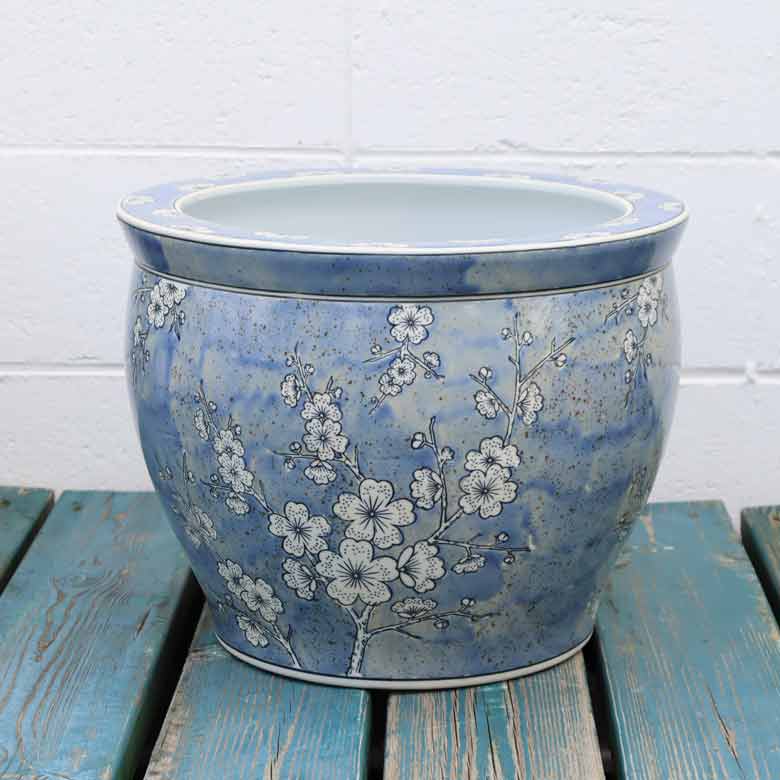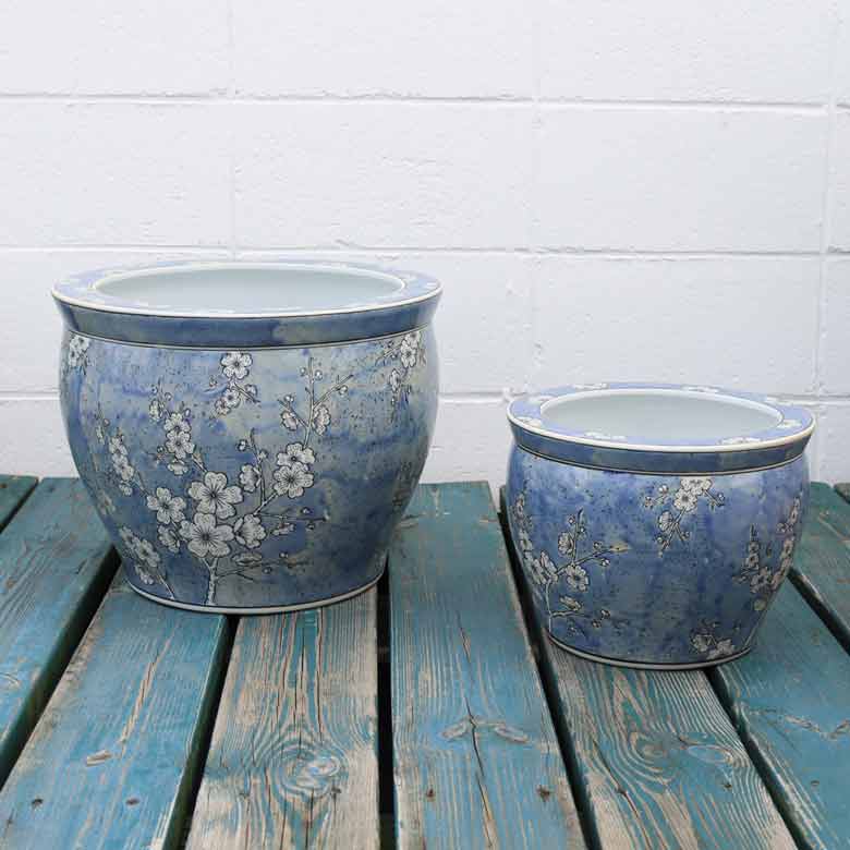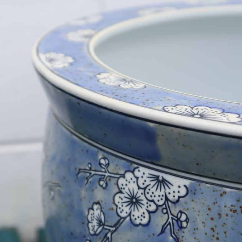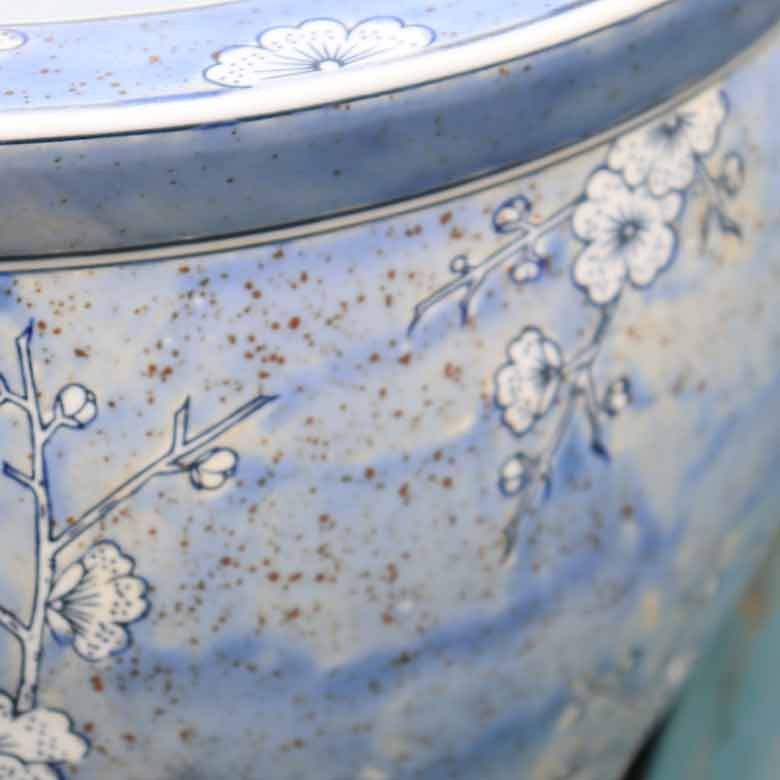 ◆和モダン風の空間づくりに最適な染付の陶器水鉢です。