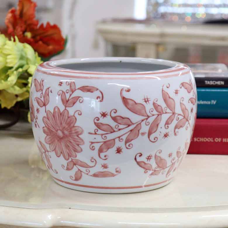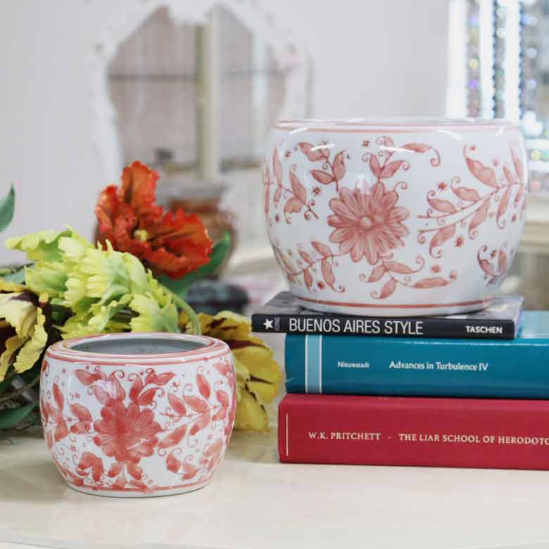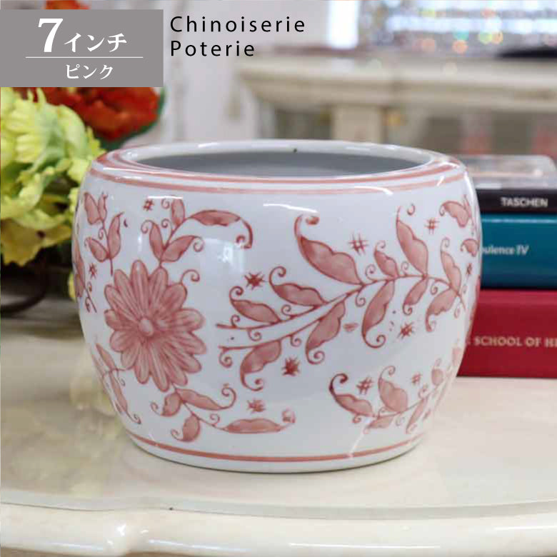 水鉢 ピンク 花柄 7号 ミニ火鉢 鉢カバー プランターカバー