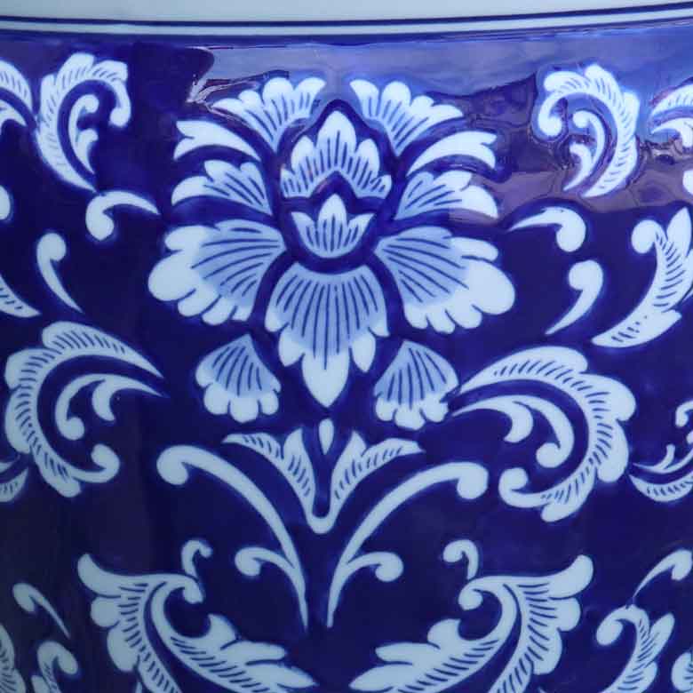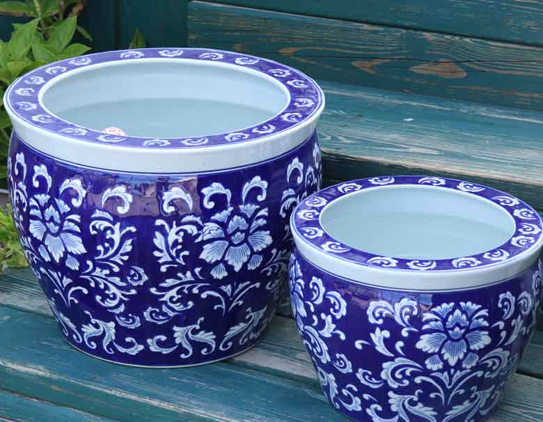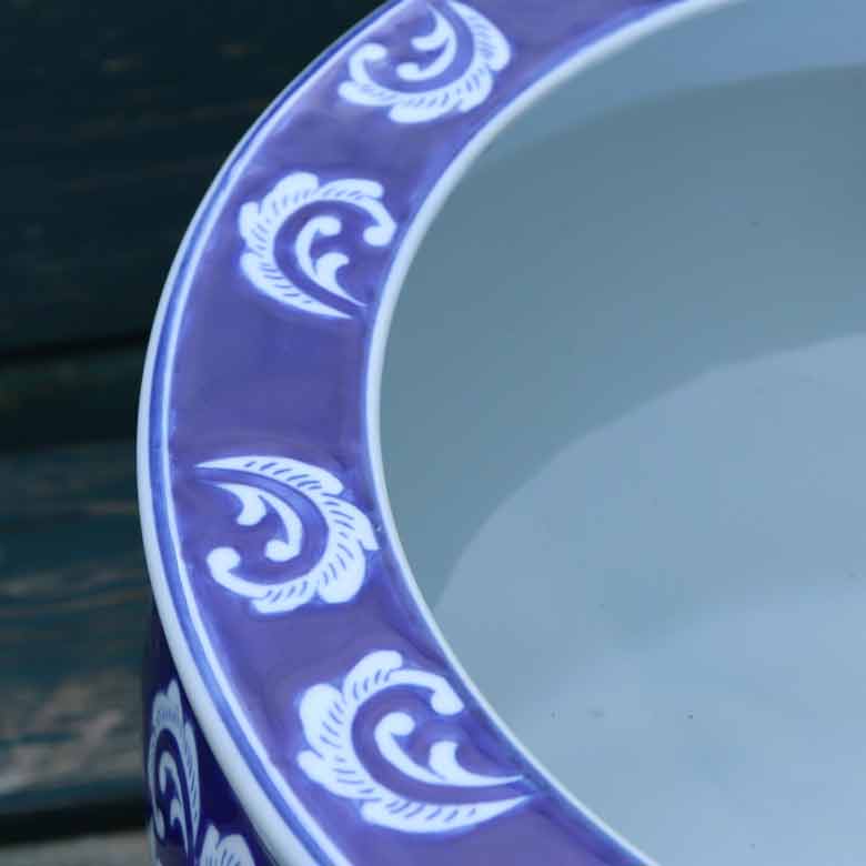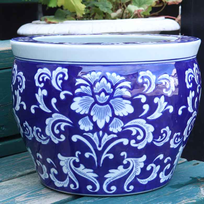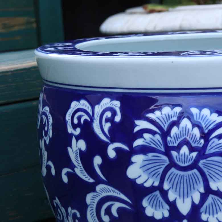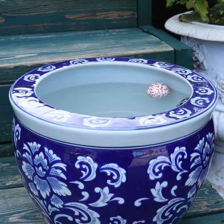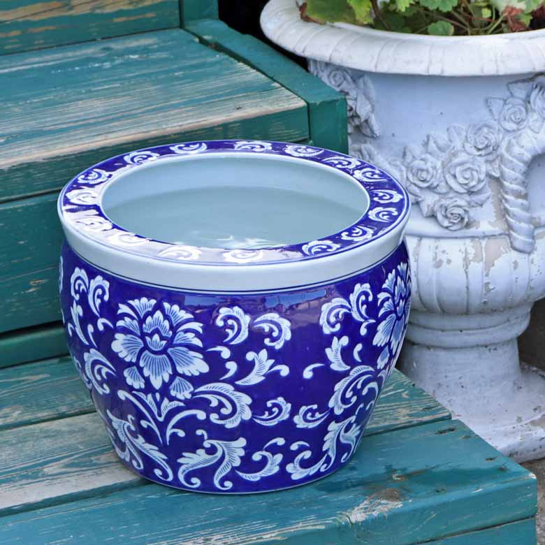 ◆和モダン風の空間づくりに最適な染付の陶器水鉢です。