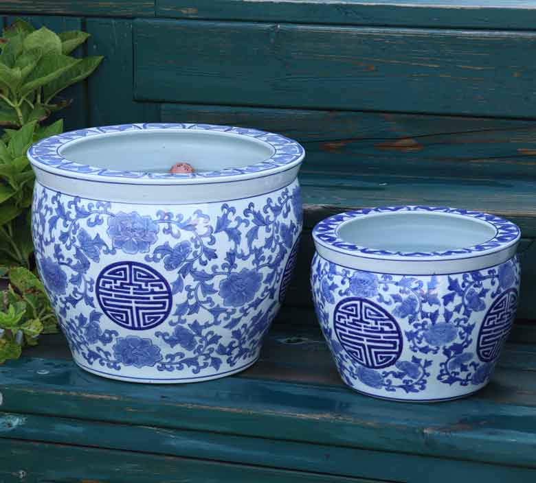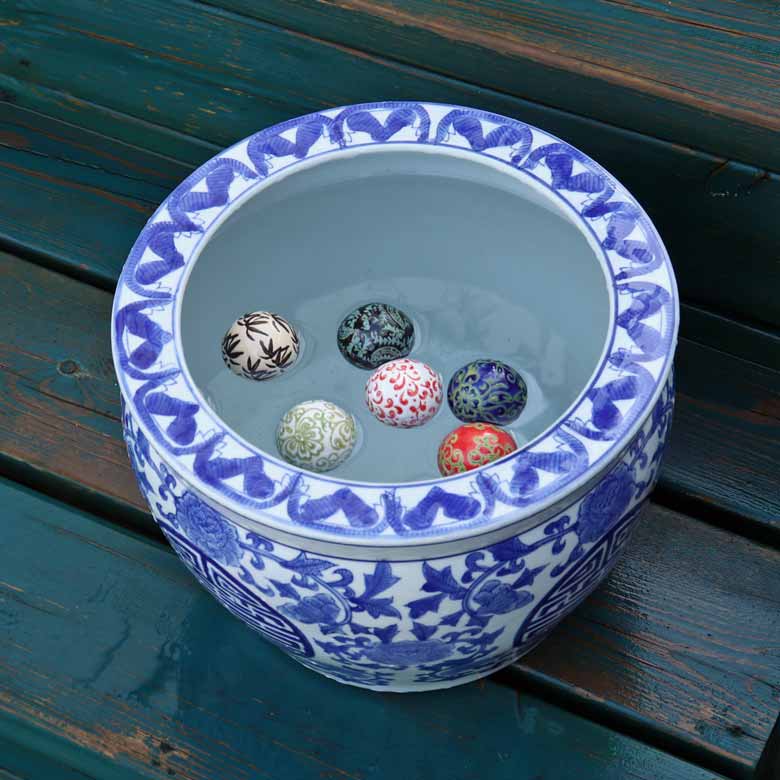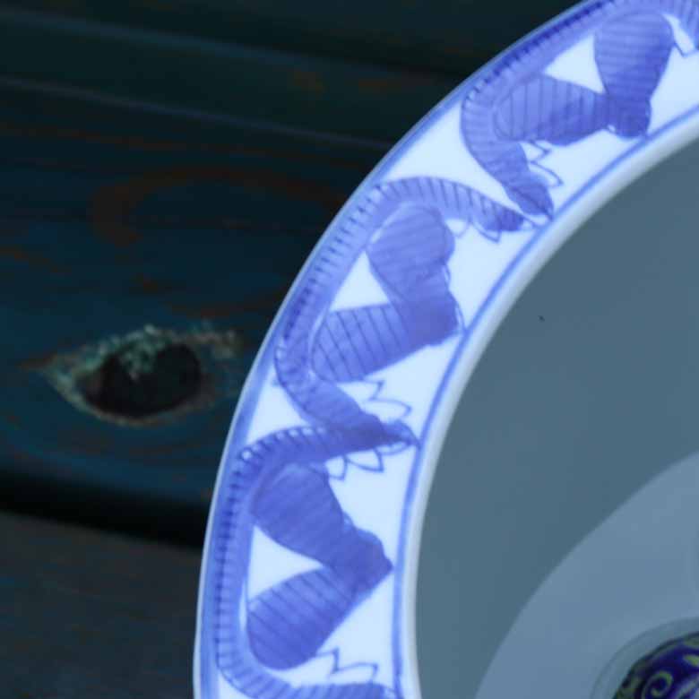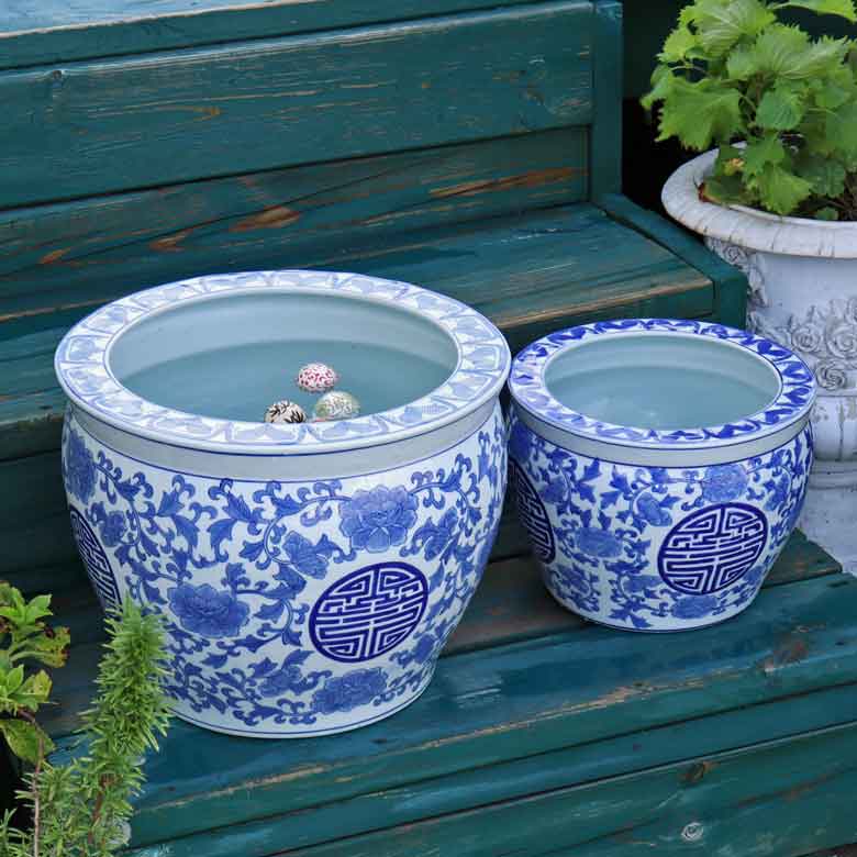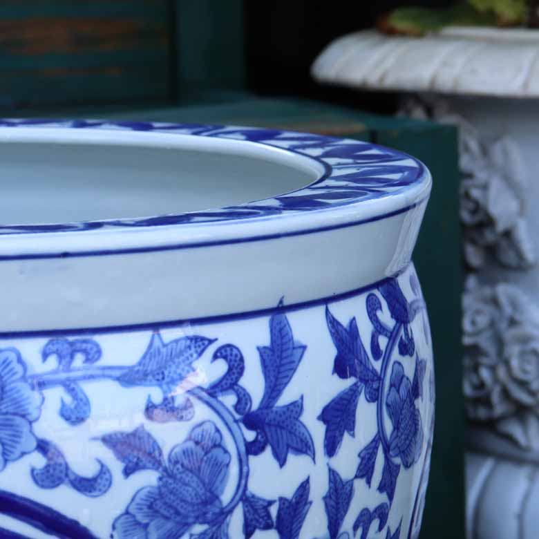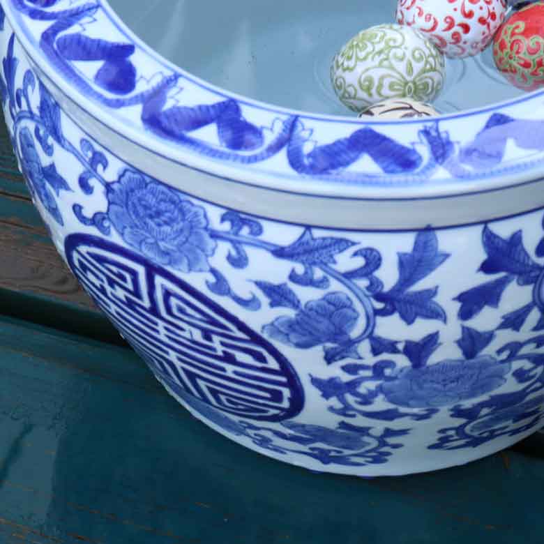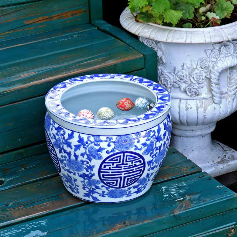 ◆和モダン風の空間づくりに最適な染付の陶器水鉢です。