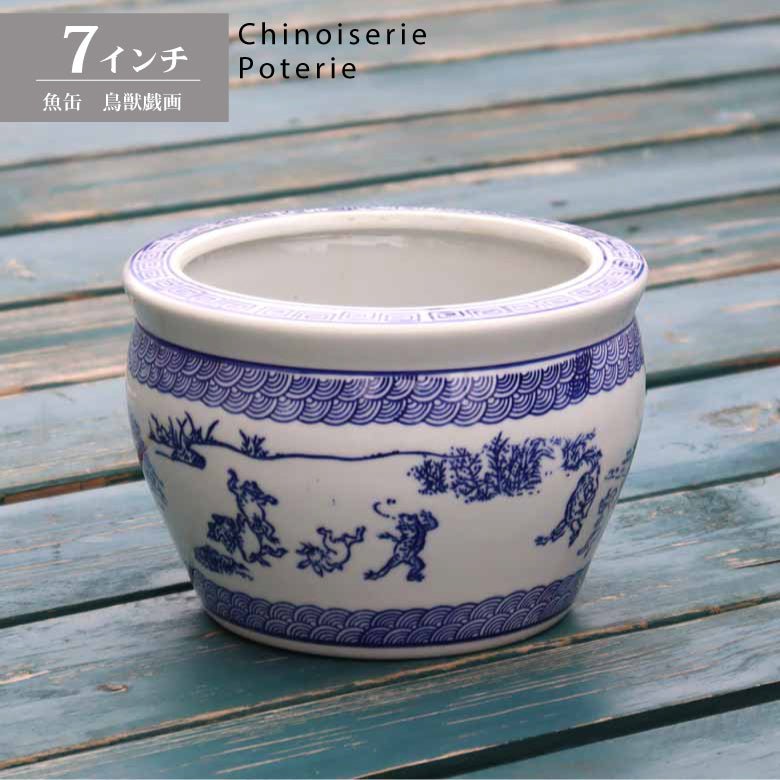 水鉢 鳥獣戯画 7号 シノワズリ オリエンタル 鉢カバー プランターカバー