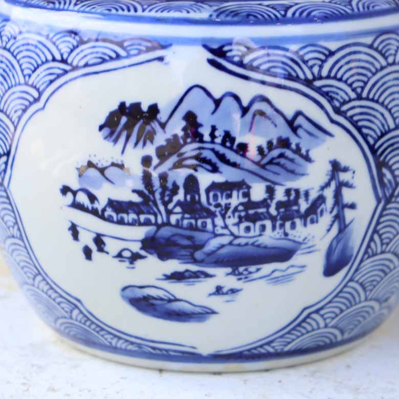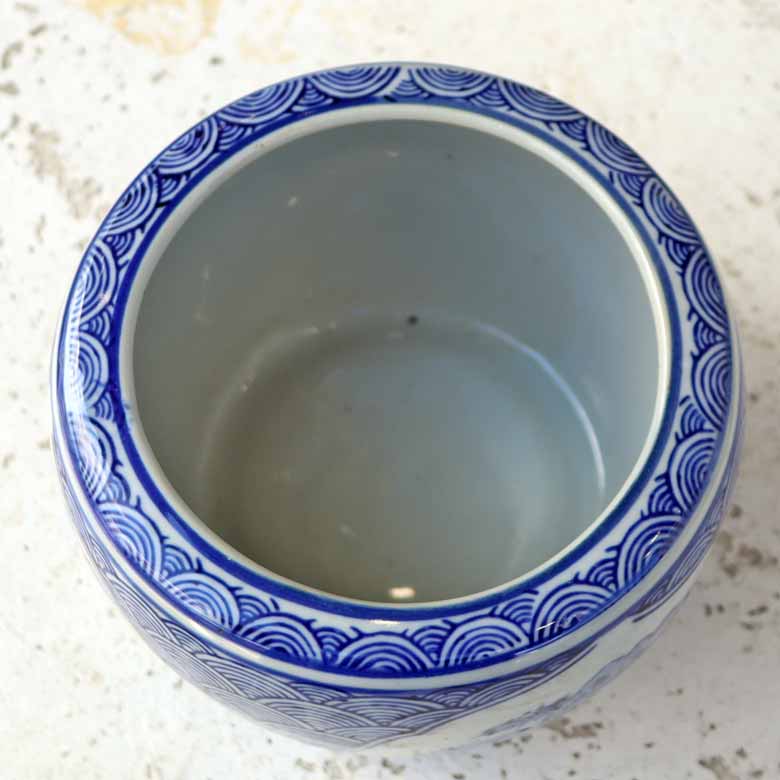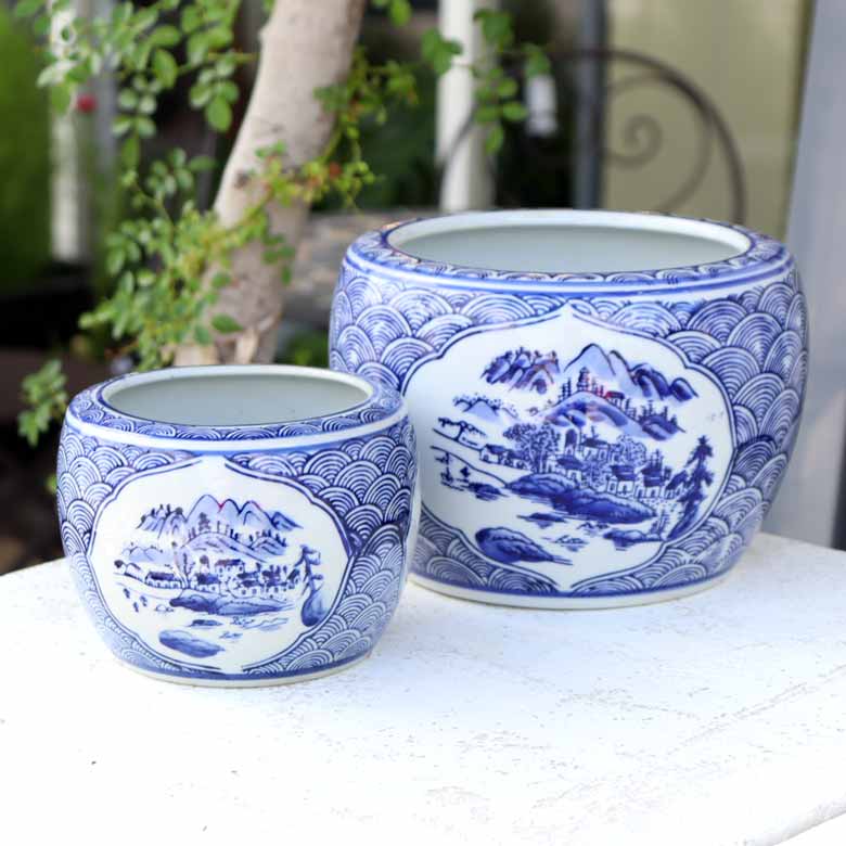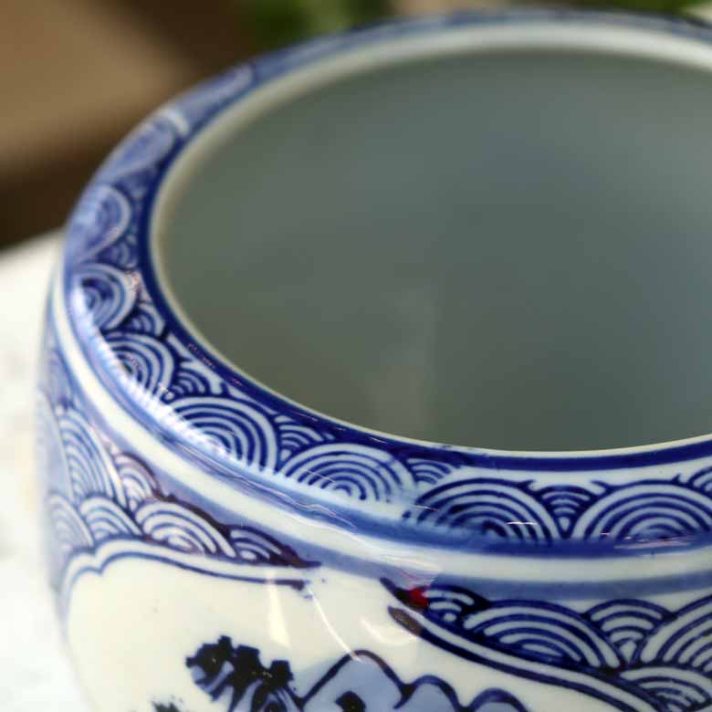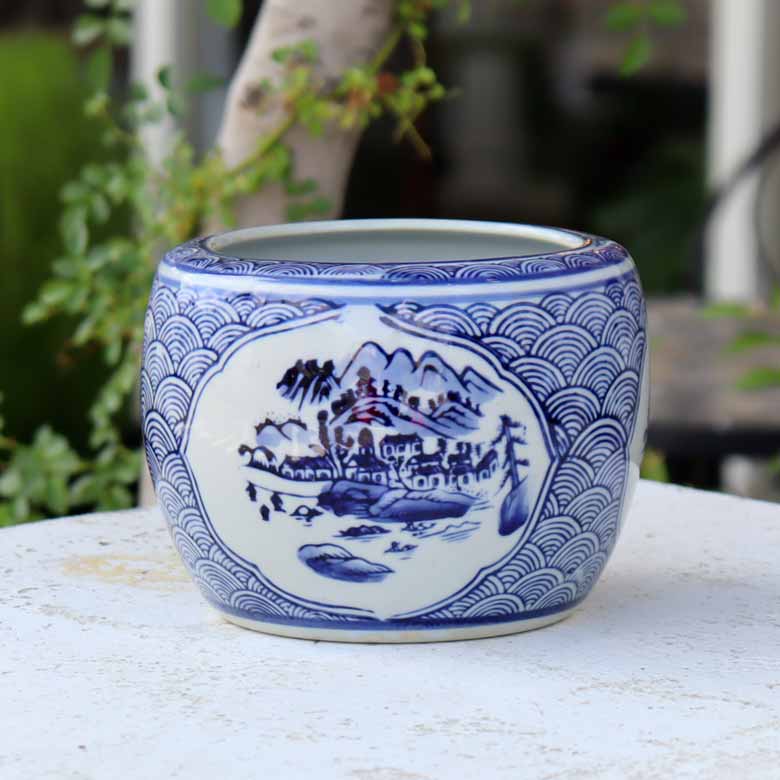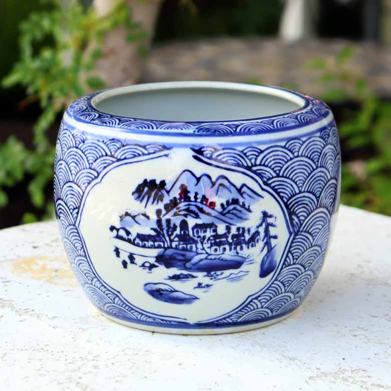 ◆和モダン風の空間づくりに最適な染付の陶器水鉢です。