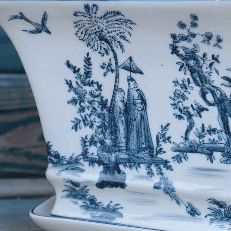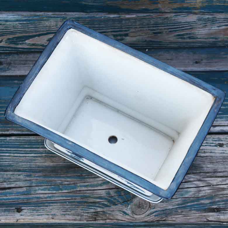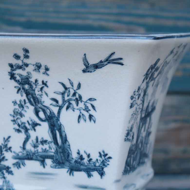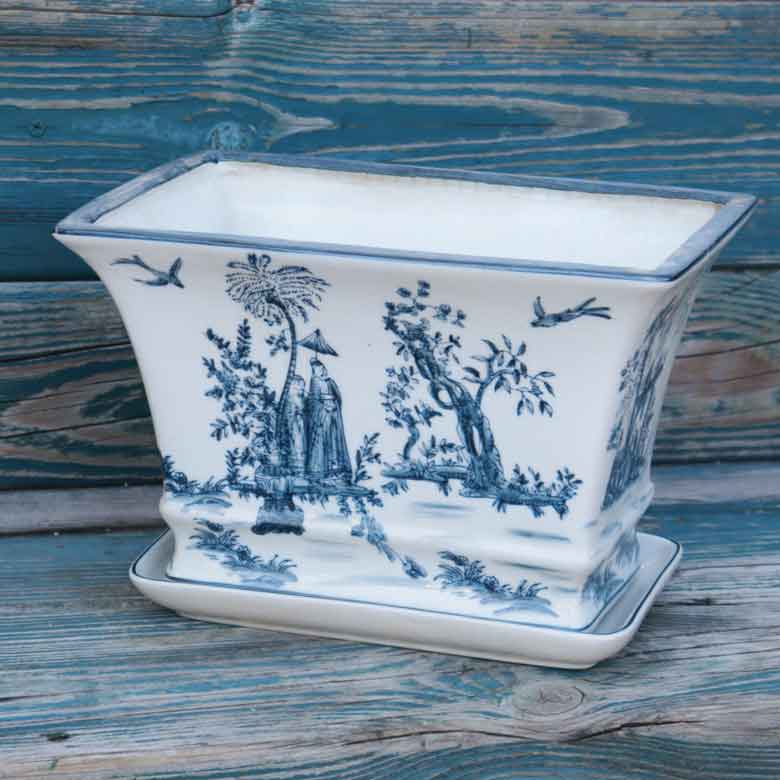 陶器 プランター 角型 底穴あり 染め付け シノワズリ