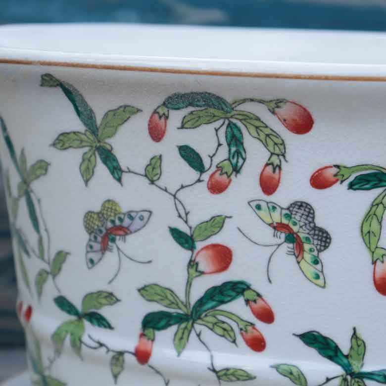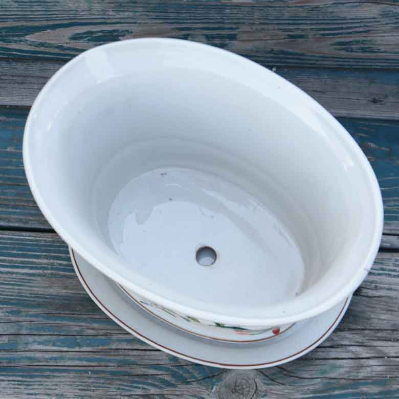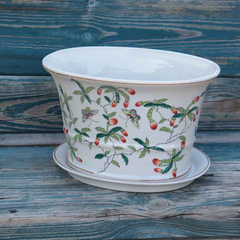 陶器 プランター 楕円型 底穴あり 染め付け シノワズリ