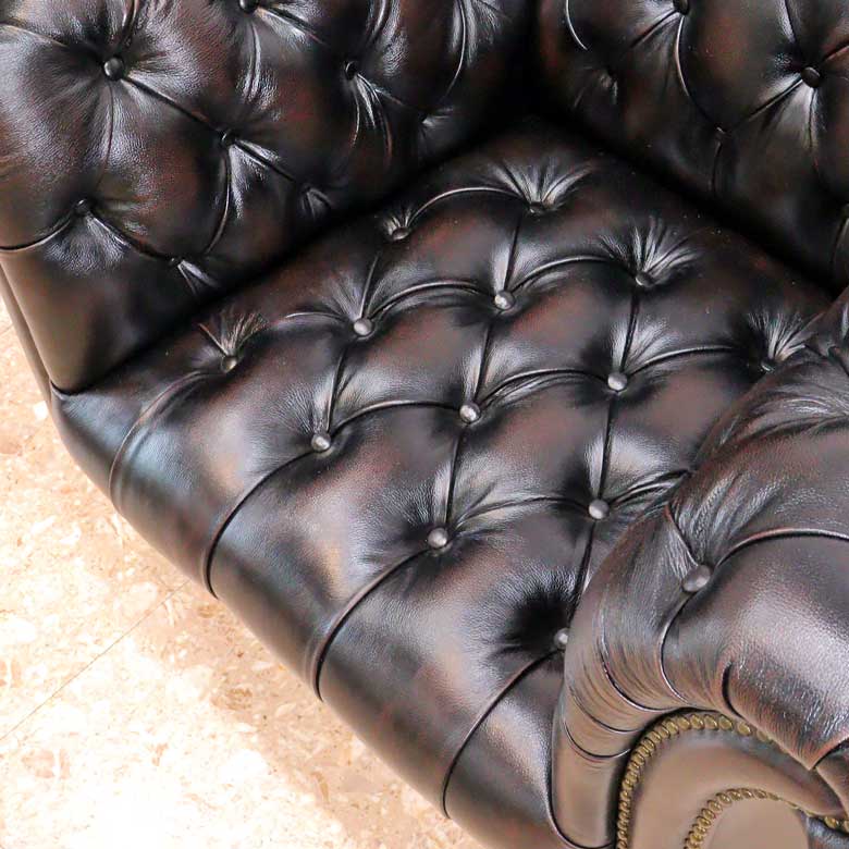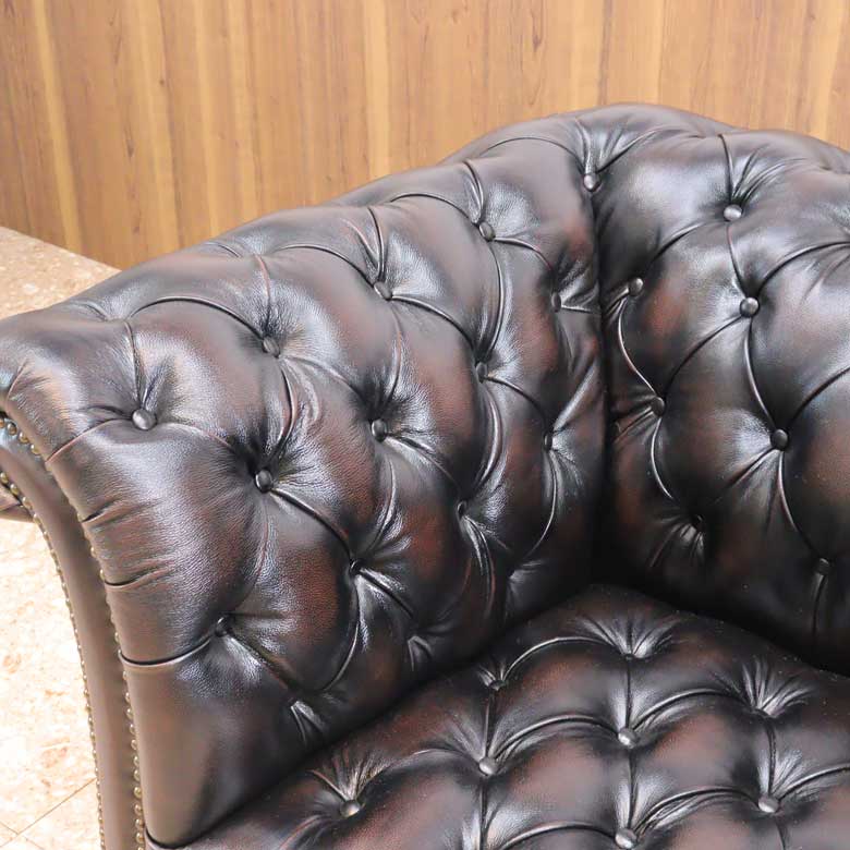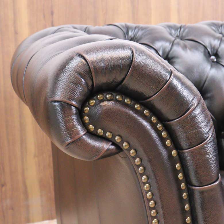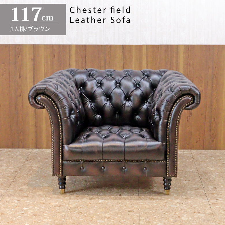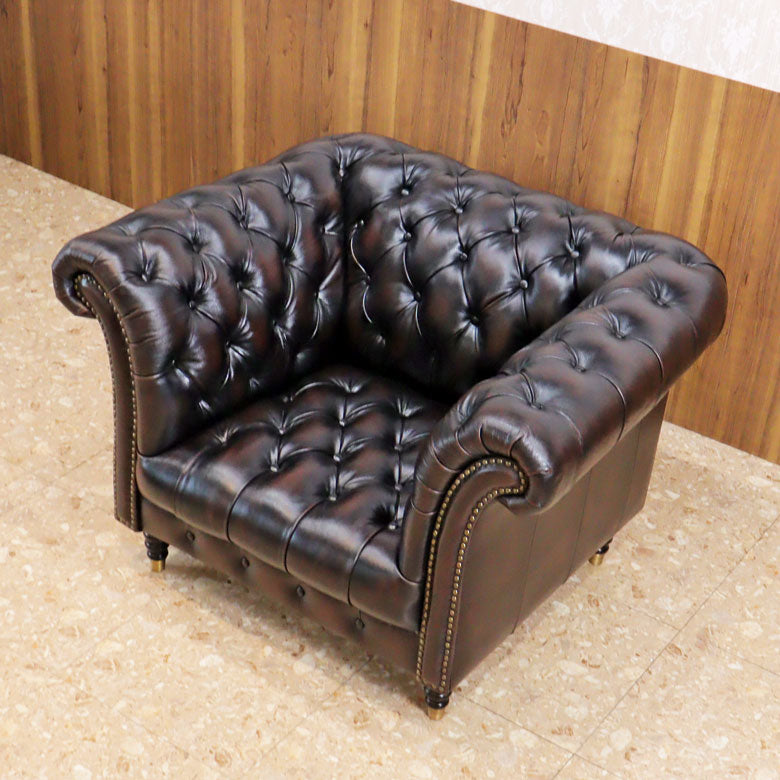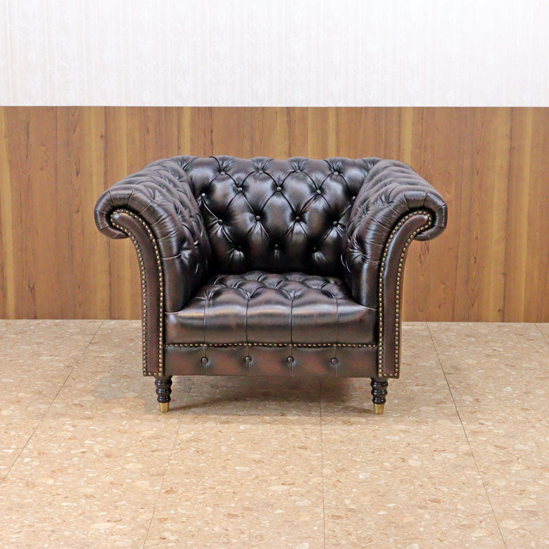 総革張りソファー チェスターフィールド 1人掛け ブラウン 1人掛け 本革