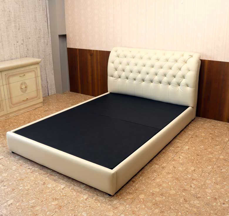 ダブルとワイドダブルの2サイズのマットレスに対応したフレーム。厚めのマットレスも合わせやすいボリュームあるヘッド高もポイントです。