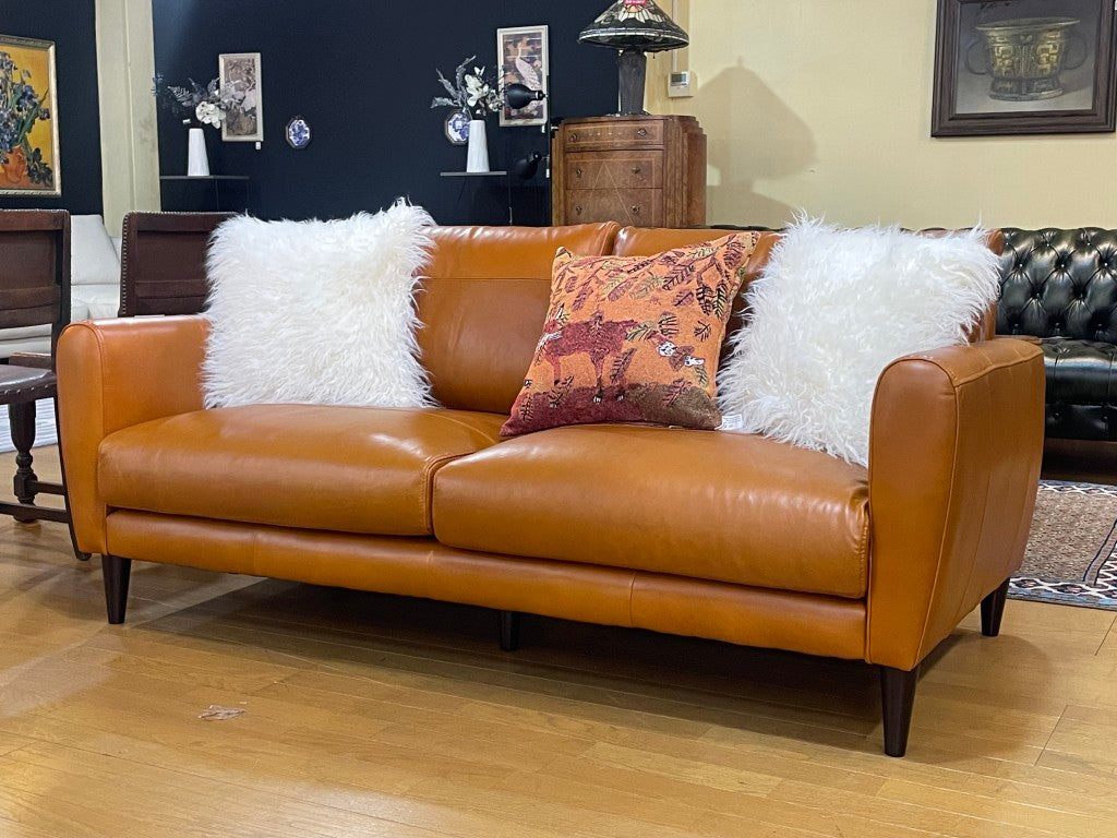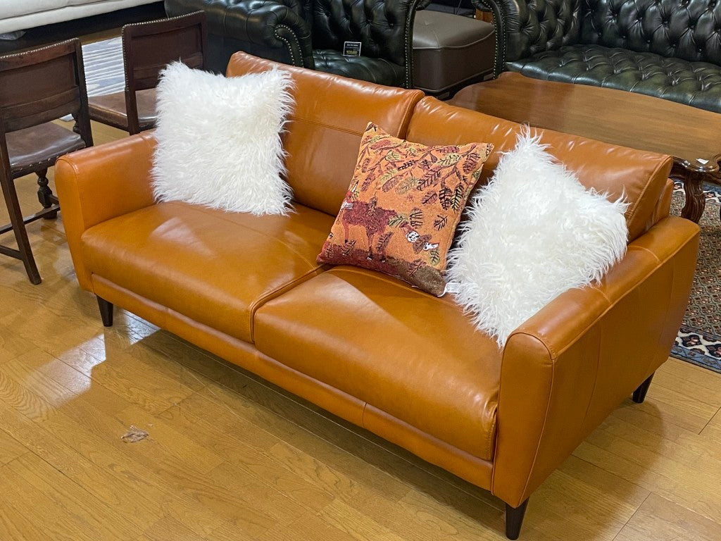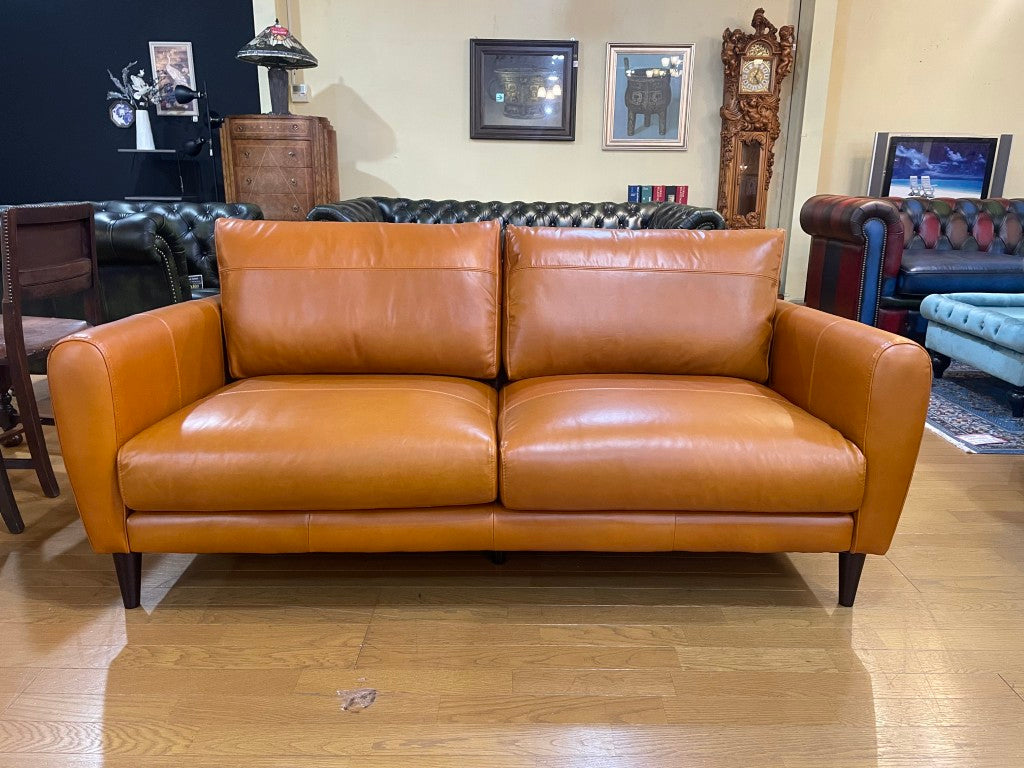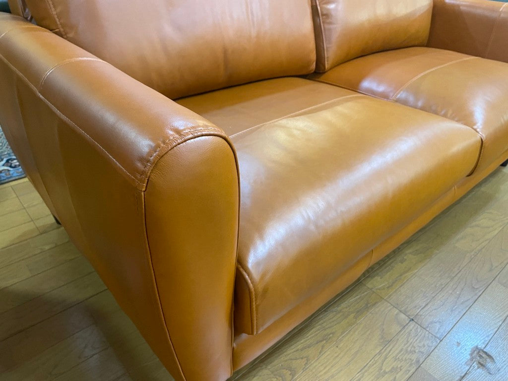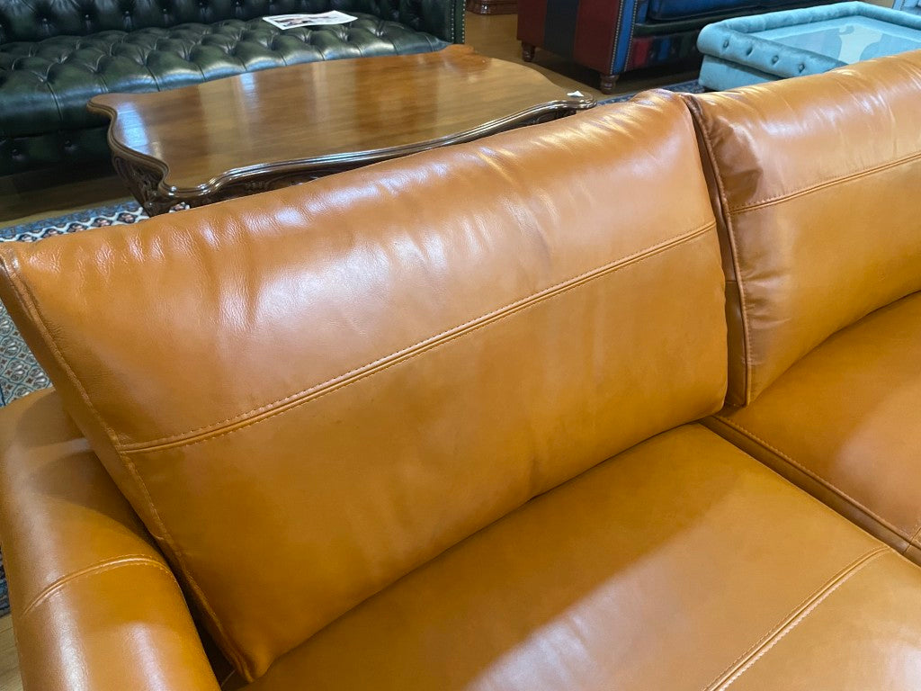 総革張りソファー 2.5人掛け ブラウン 2人掛け 本革 オイルレザー レトロ