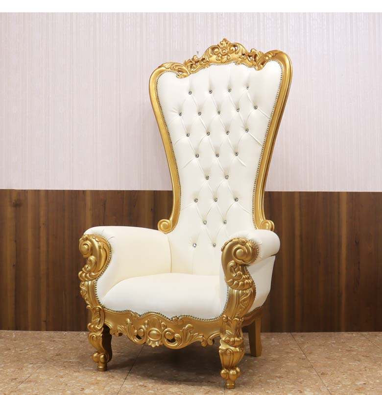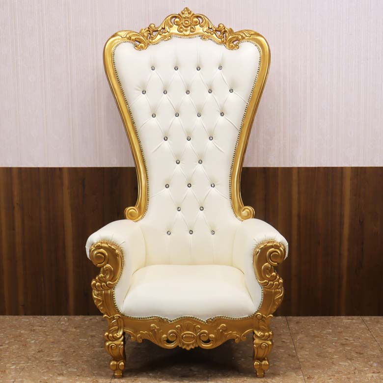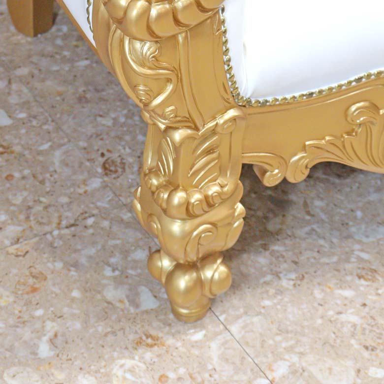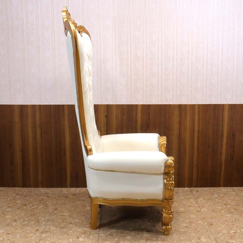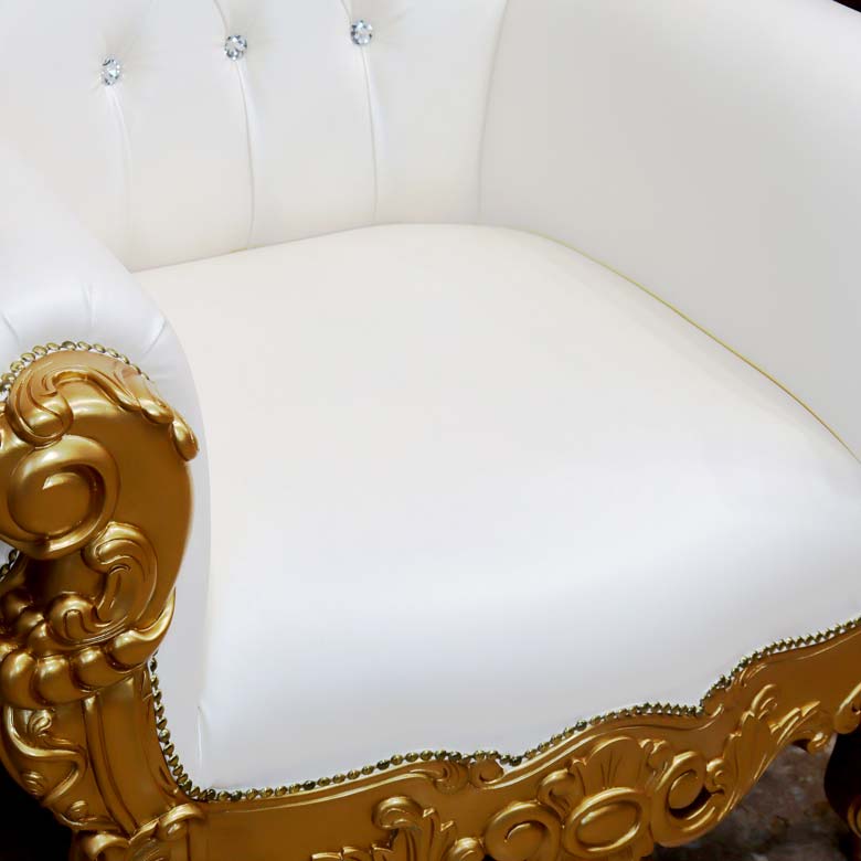 女王様の椅子 クイーン チェア ホワイト ゴールド アンティーク ハンドメイド仕上げ