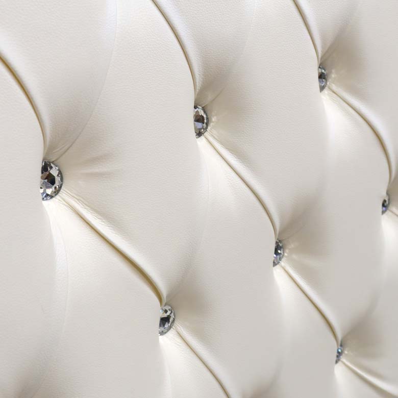 ボタン止めの背部分と座面まで、エレガントで高級感あふれるファブリック