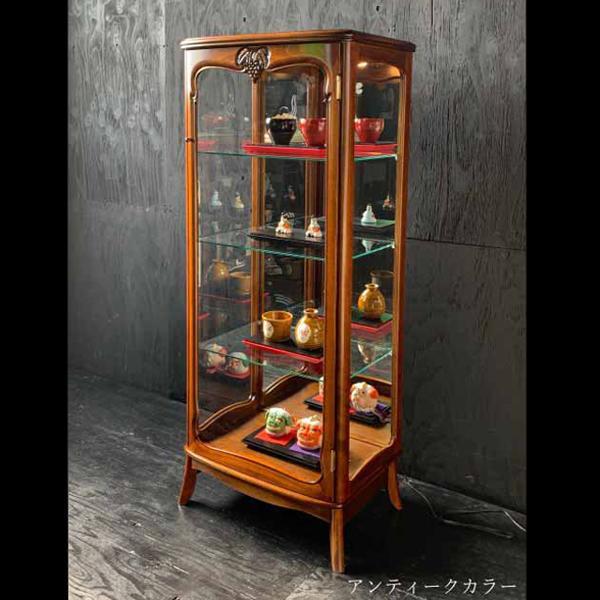 彫刻のフォルムが美しい 華やかなガラスキュリオケース