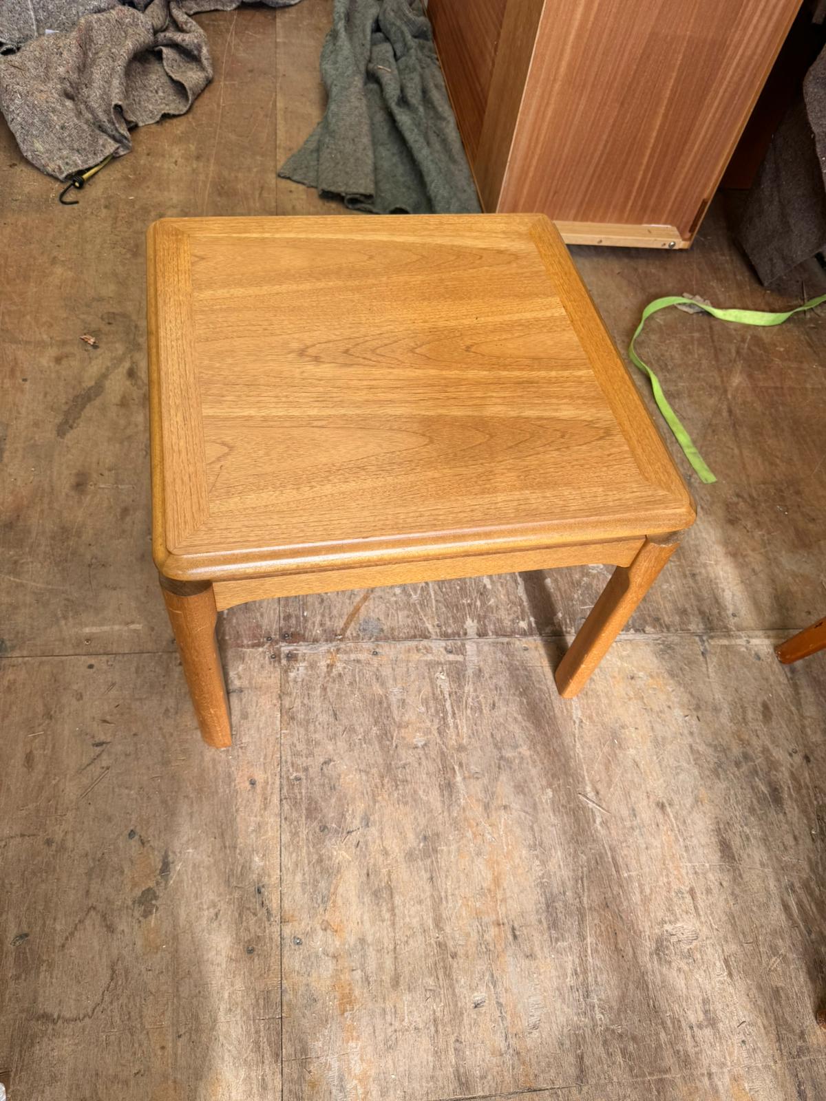 イギリスのミッドセンチュリー家具ブランド「ネイサン(Nathan)」による、上質なチーク材を使用したスクエア型のサイドテーブルです。