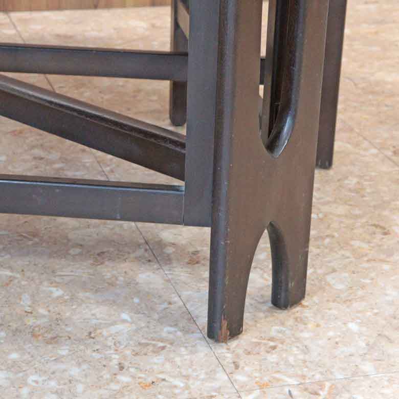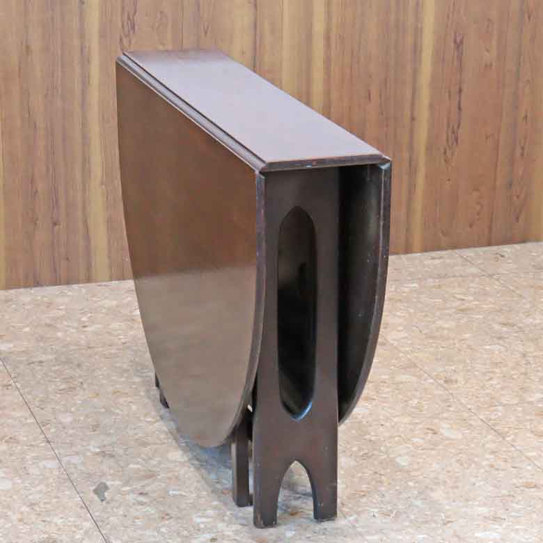 そのため、普段はコンパクトにたたんでおけるが、来客時には広げられる小型で機能的な家具が求められ、ゲートレッグテーブルが重宝されました。