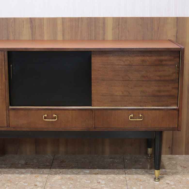 イギリス・ミッドセンチュリーモダンを代表するブランド、G-PLAN(ジープラン)が1950年代後半に発表し、一世を風靡した人気の「Tola and Black(トーラ・アンド・ブラック)」シリーズのサイドボードです。