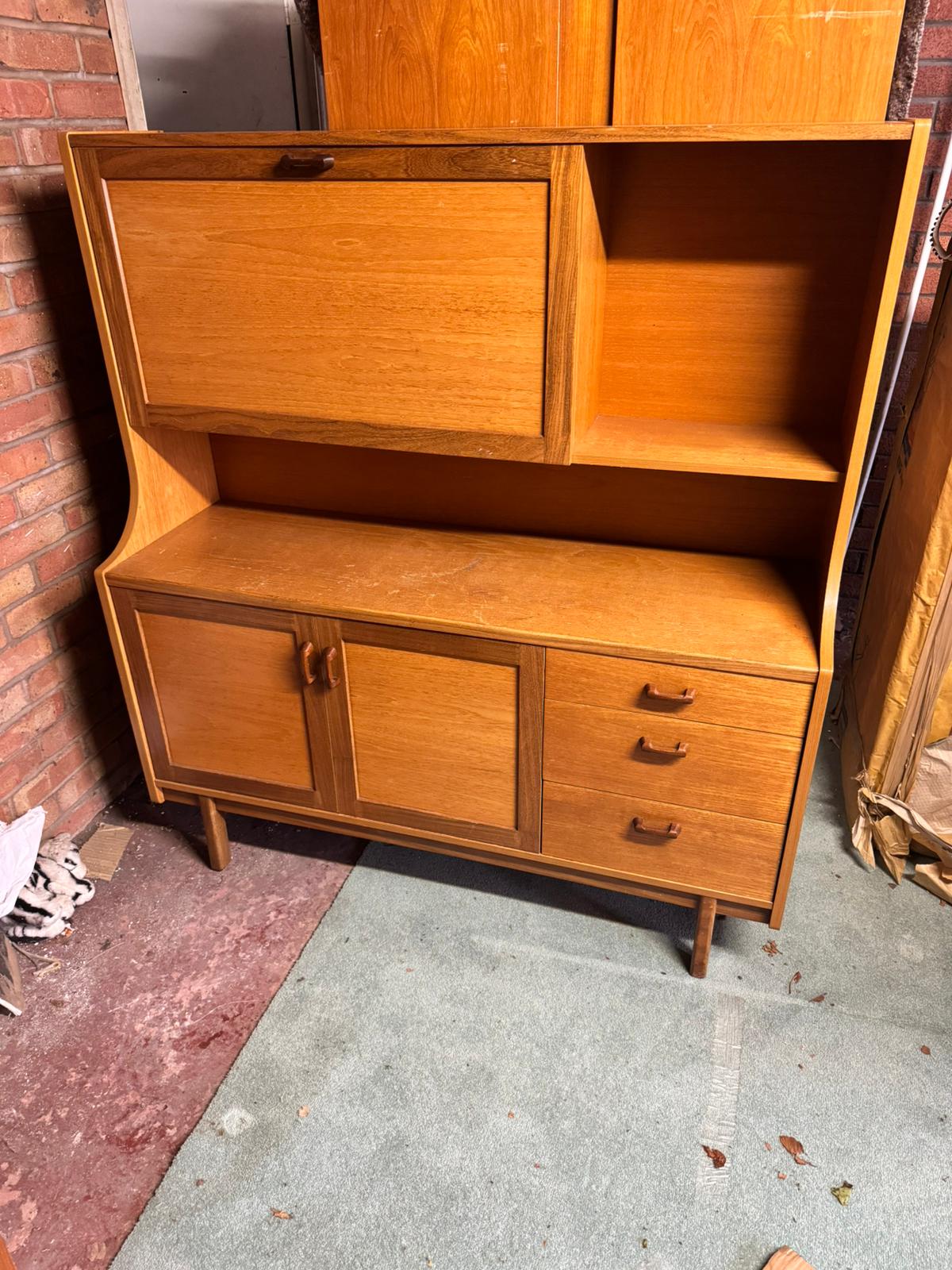 イギリス ヴィンテージ チーク材 ライティングビューロー付き キャビネット サイドボード