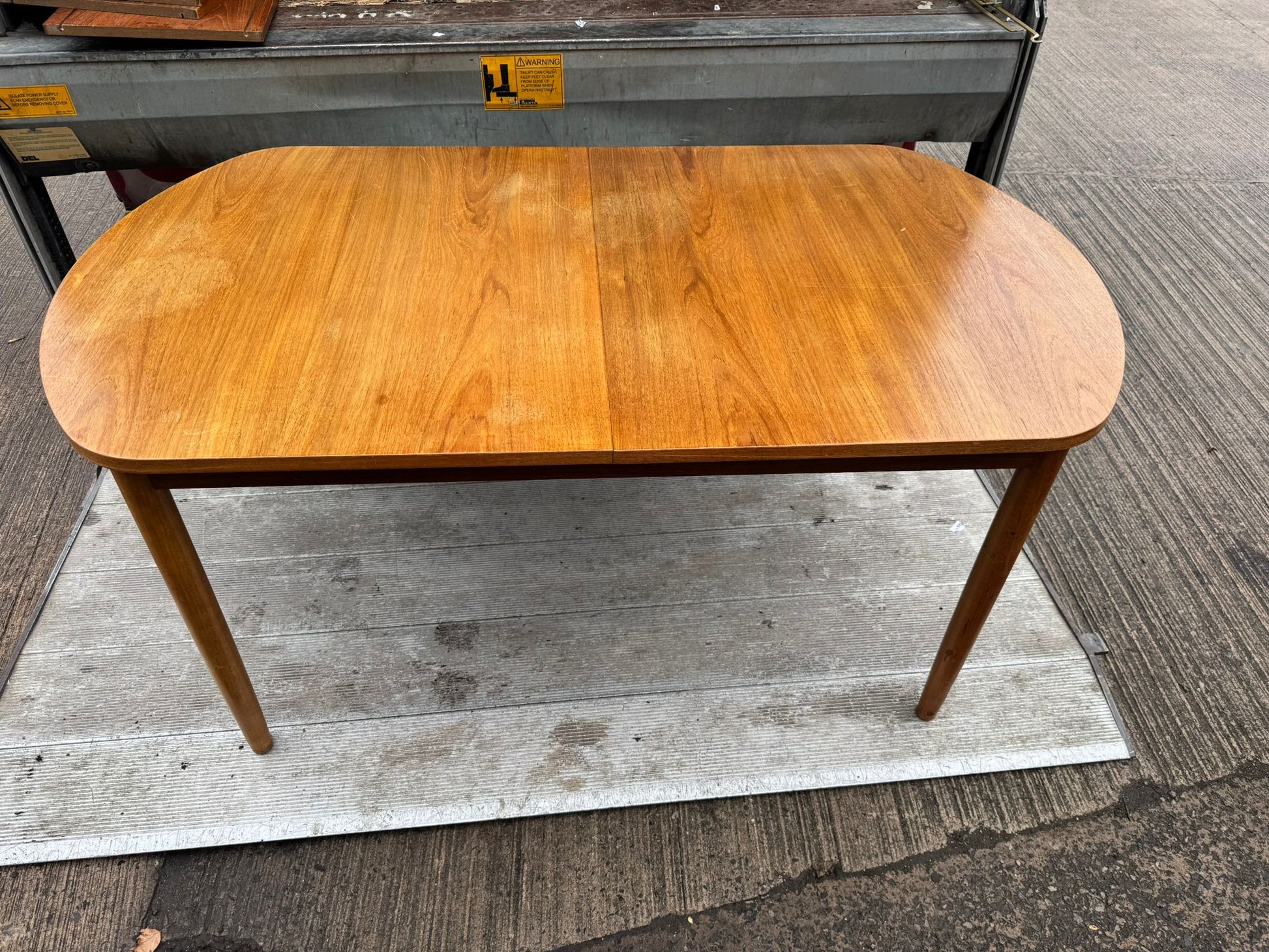 英国製ヴィンテージダイニングテーブルです。北欧デザインの影響を強く受けた、ミッドセンチュリーモダン期の特徴的なスタイルを持っています。