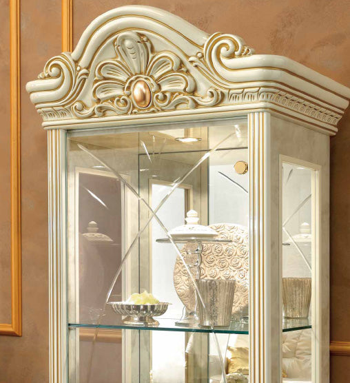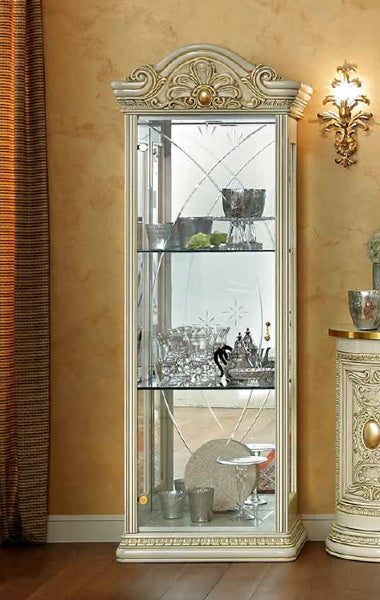 レオナルド 1ドアキャビネット アイボリー イタリア キャメル カップボード キュリオケース