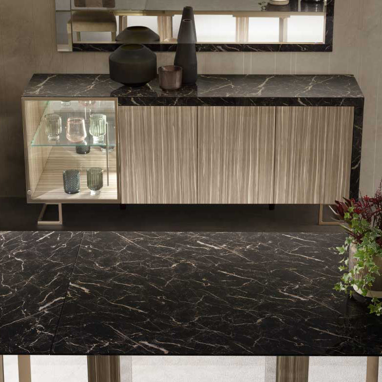 深みのある黒に金の模様が印象的な Portoro Gold大理石調の仕上がりで、イタリアデザインの感性が一段と際立ちます。