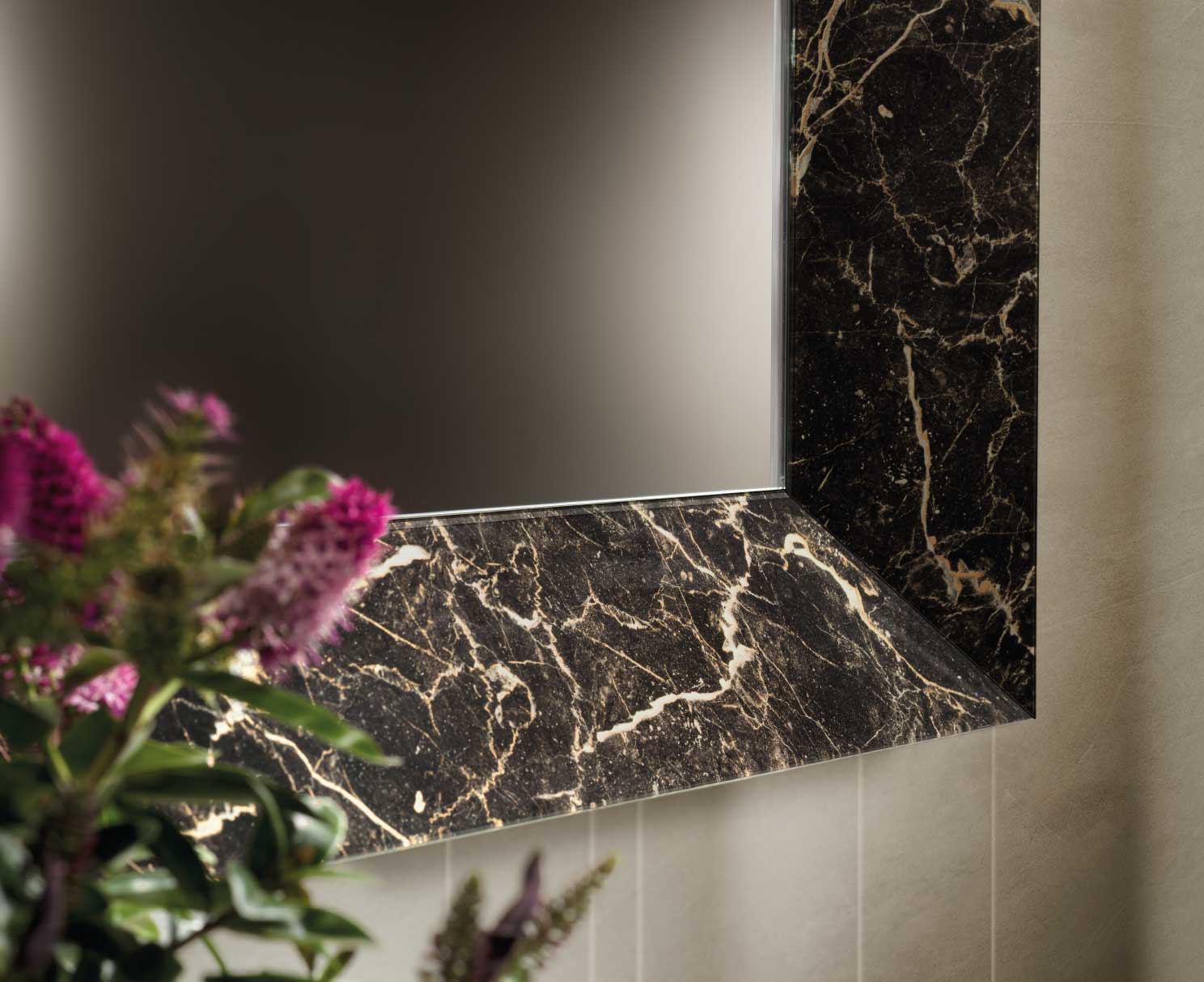 深みのある黒に金の模様が印象的な Portoro Gold大理石調の仕上がりが、イタリアデザインの感性が一段と際立ちます。
